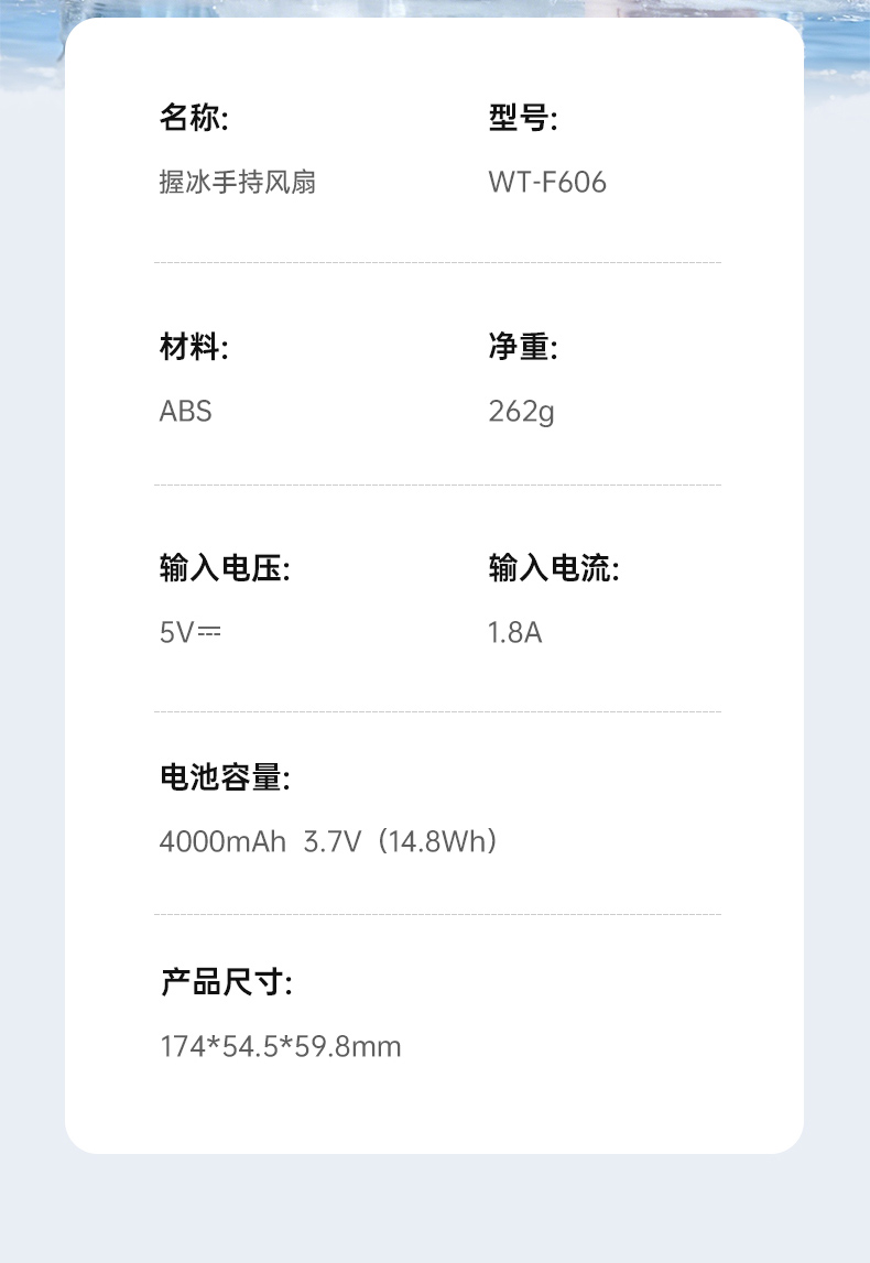 右心新款创新手握冰风扇手持风扇F606