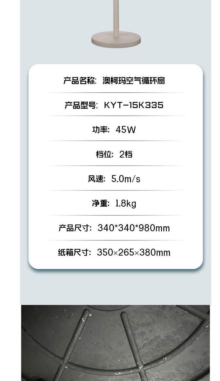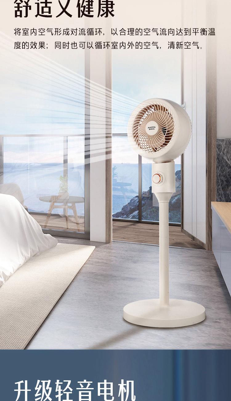 额定功率:45W 风 速:5.0m/s 档 位:2档 净 重:1.8kg 包装尺寸:350×265×380mm 产品尺寸:340*340*900mm 装 箱 数:1pcs 将室内空气形成对流循环,同时也可以循环室内外的空气,清新空气。 小巧精致机身,立式使用。 大扭角涡轮风叶搭配扩压风筒设计,增大风压,远距离送风 安静运行,柔风伴睡更安心,可用于夜间,不打扰睡眠,静谧安静 低档静音风,大风,随心选择。