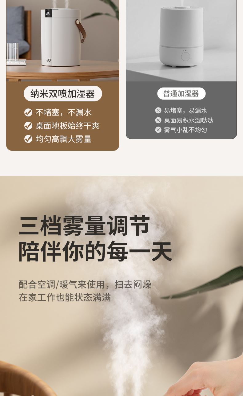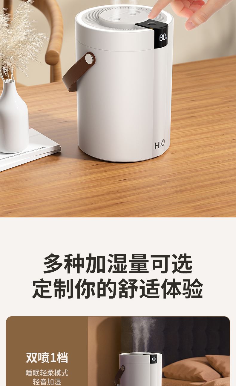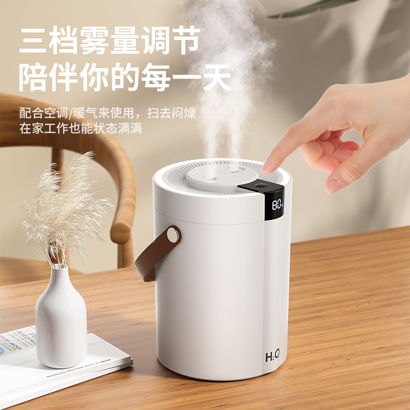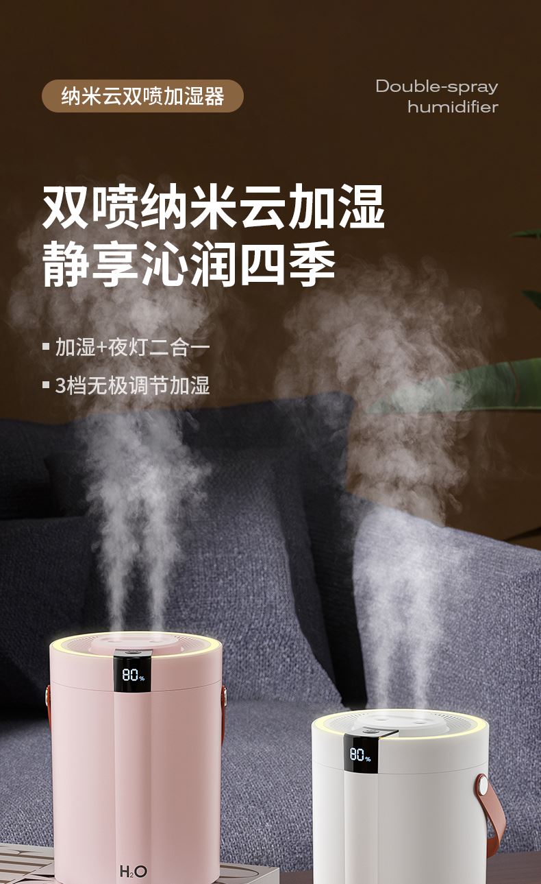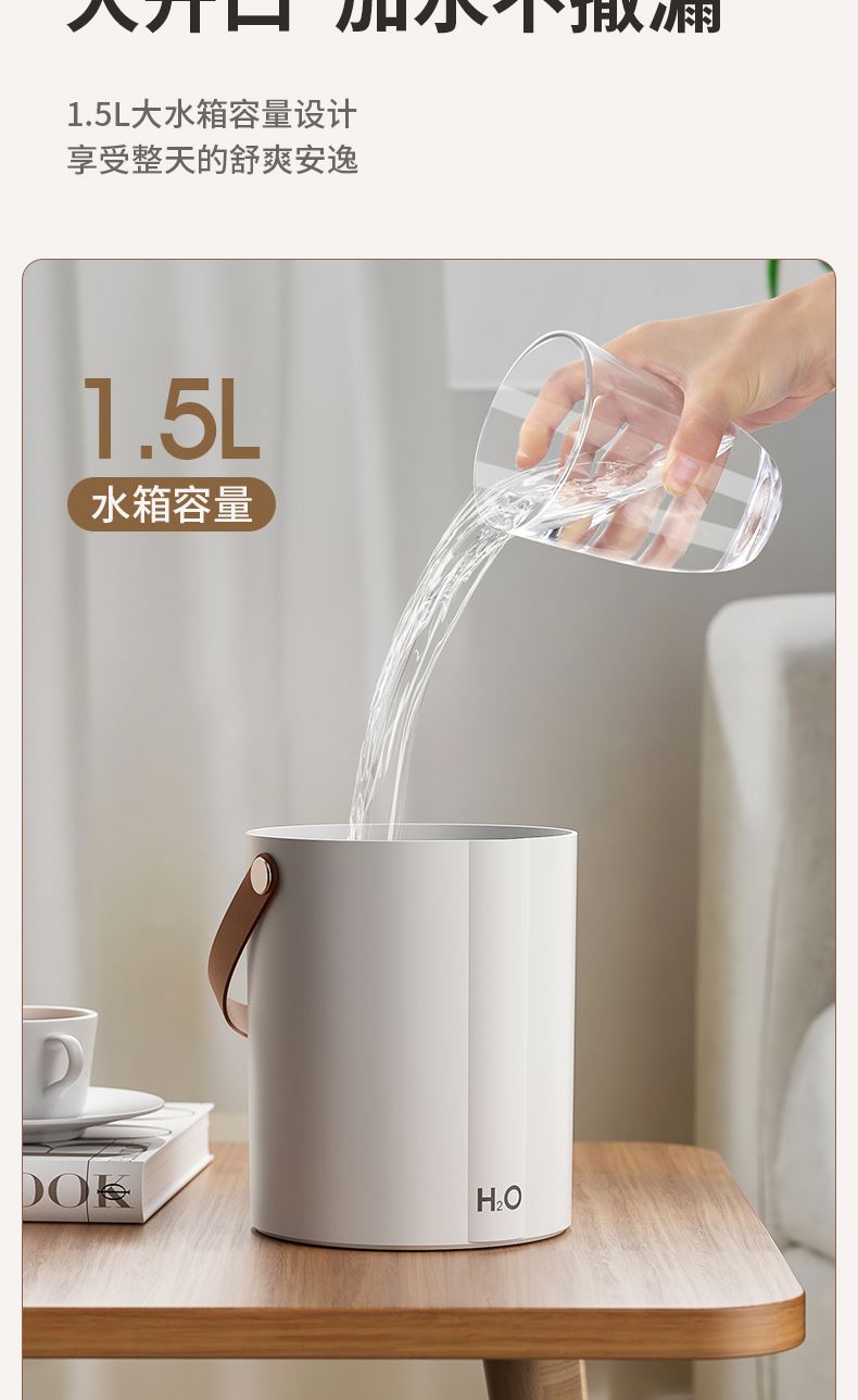 型号:YM-GS44 水箱容量:1.5L 电池容量:1200mAh 档位:3档 产品尺寸:130*127*175mm 产品颜色:白色,粉色 告别传统下加水方式,揭盖直接上面加水,水箱分离设计,让加水和清洗更便捷;智能数显屏,档位和电量一目了然;多种喷雾方式,定制你的舒适体验;搭配小夜灯,让生活更惬意;皮质防滑手提,携带方便。