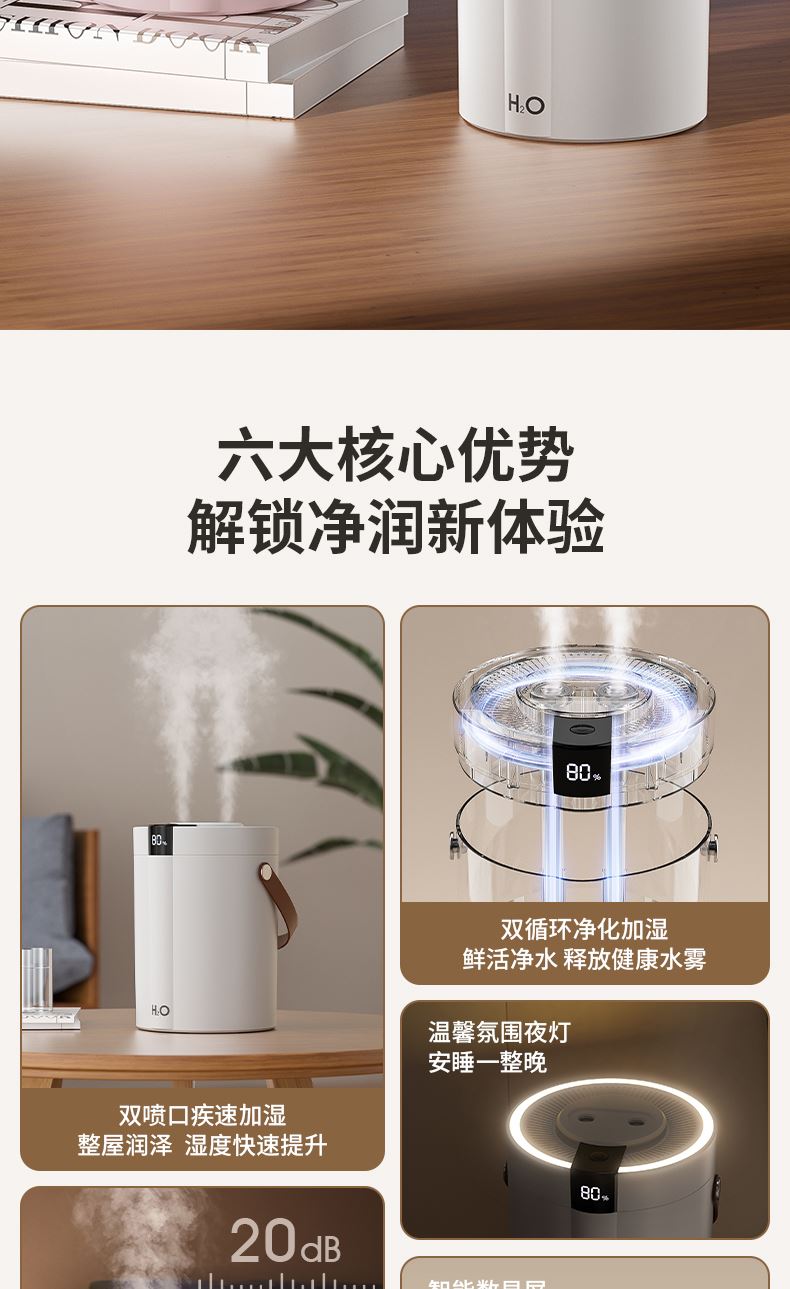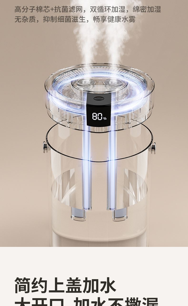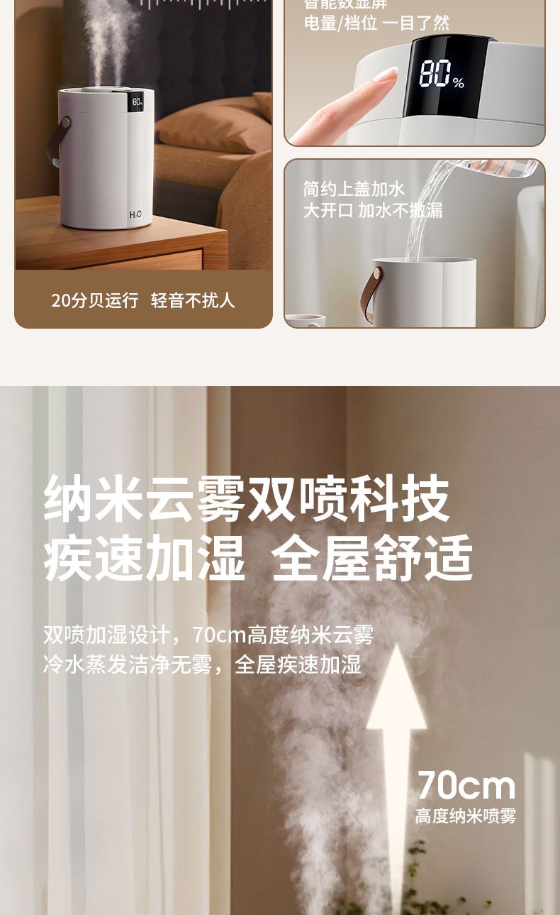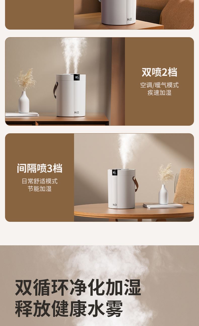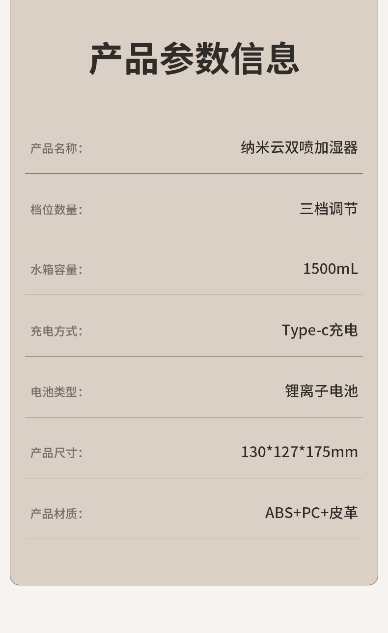 型号:YM-GS44 水箱容量:1.5L 电池容量:1200mAh 档位:3档 产品尺寸:130*127*175mm 产品颜色:白色,粉色 告别传统下加水方式,揭盖直接上面加水,水箱分离设计,让加水和清洗更便捷;智能数显屏,档位和电量一目了然;多种喷雾方式,定制你的舒适体验;搭配小夜灯,让生活更惬意;皮质防滑手提,携带方便。