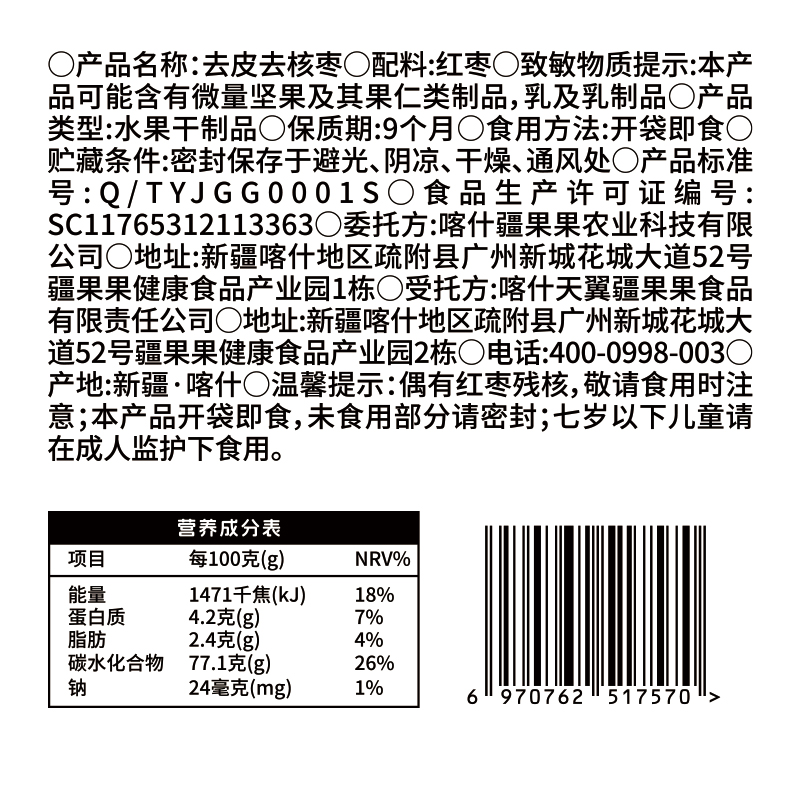 疆果乐去皮去核枣160g