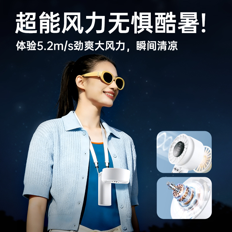 电池容量:4000mAh 续航时间:约3-16H 充电时间:2-3H 工作模式:100档无极调速+五档快捷 输 入:TYPE-C 5V2A 电 机:无刷电机 产品材质:ABS+电子元器件 颜 色:白色 高颜值,大风力,长续航,100档无极风速,带数显功能,可折叠,配挂绳可挂脖, 容量4000毫安超大风 ,18000转速硬风涡轮增压出风设计,续航快充,双顶配,TYPE-C接口快速充电。