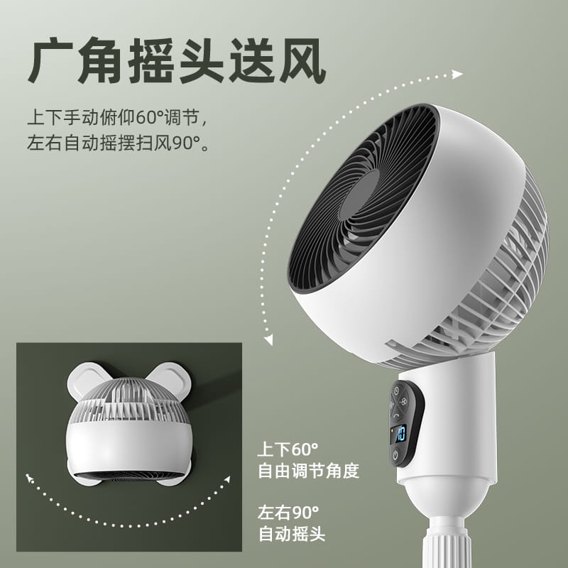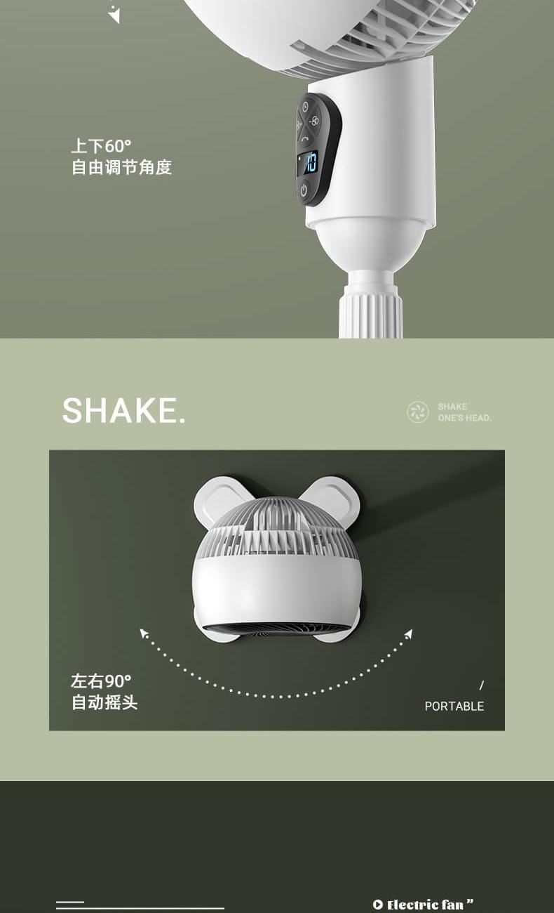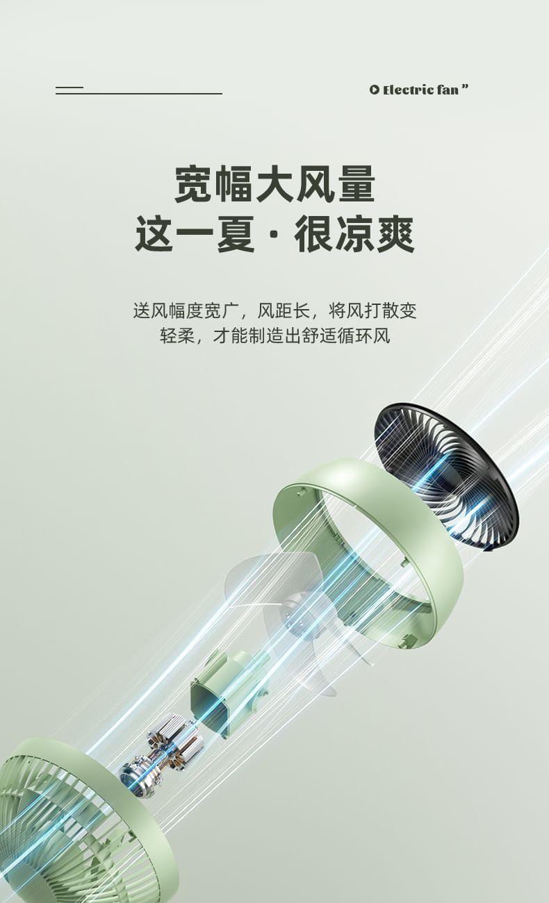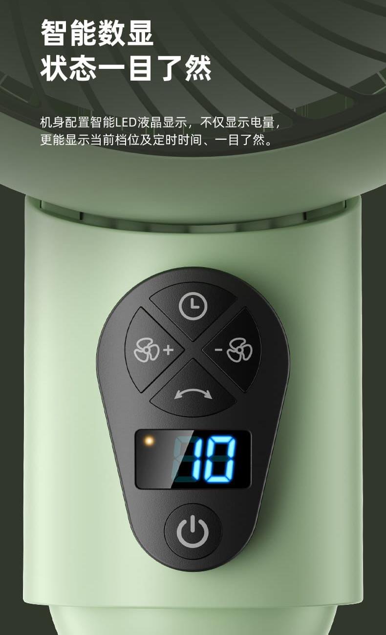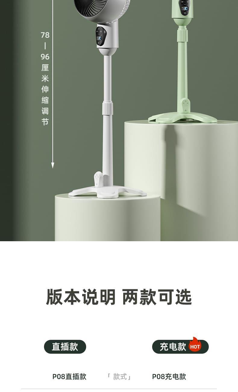 电池容量:3600mAh 产品尺寸:96*26.5*26.5cm 产品尺寸:39.5*26*24cm 外箱尺寸:55.5*41*52.5cm/4pcs 产品重量:2200g 整箱重量:10kg 产品颜色:白色、绿色 3600mAh大电池,持久续航 10档风速,左右自动摇头 8小时定时,带小夜灯 带远程遥控 78-96cm伸缩可调