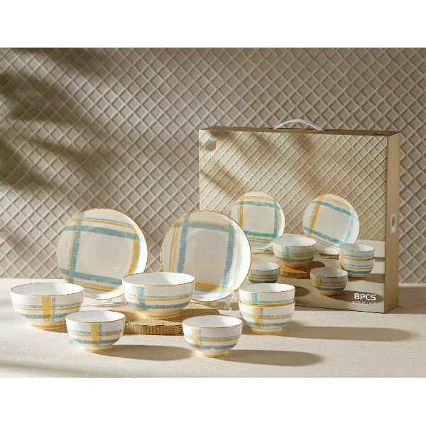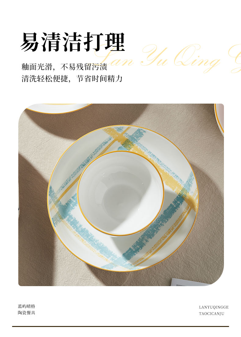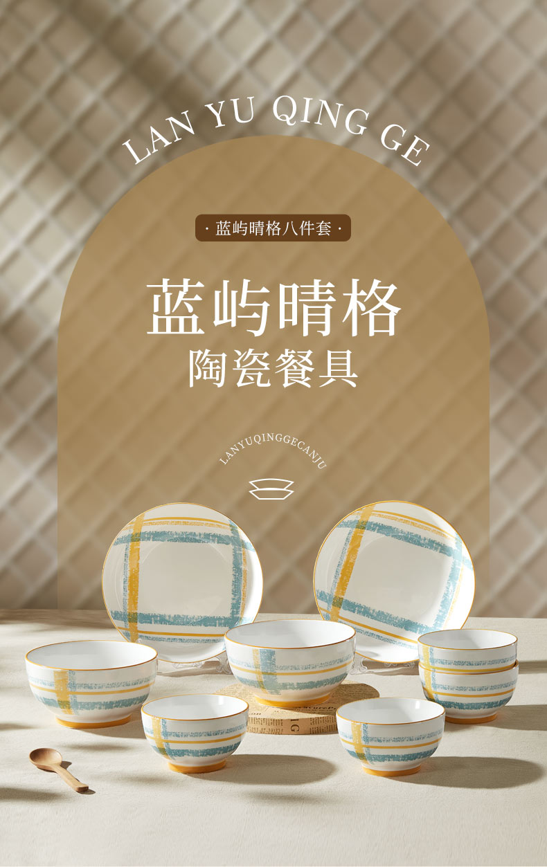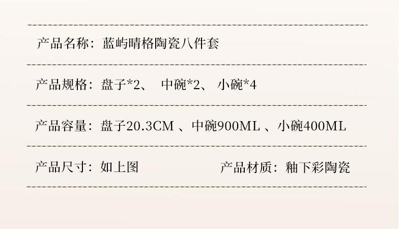 釉夏蓝屿晴格陶瓷餐具八件套Y-LY/L8