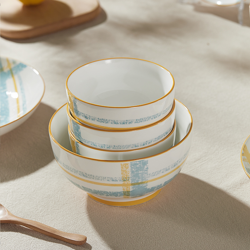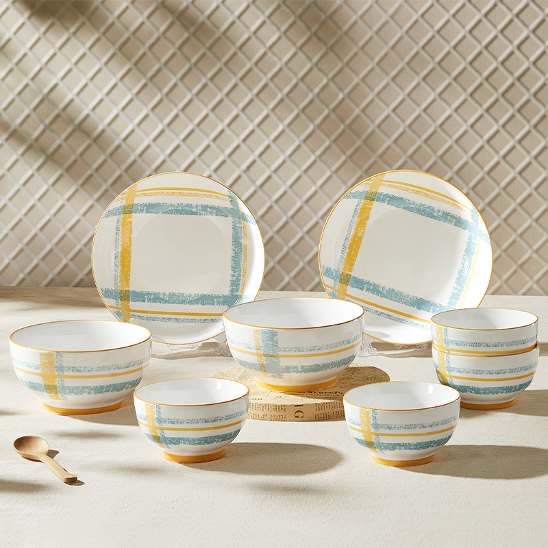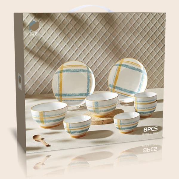 材 质:高温瓷 产品参数:4.5英寸小碗*4、6英寸中碗*2、8英寸盘子*2 彩盒尺寸:448*92*387mm 外箱尺寸:58*46*40cm 产品卖点:1.厚实瓷质,隔热防烫,外观色彩清新、光洁透亮、花面细腻。2.适用于洗碗机,消毒碗柜、微波炉、冰箱等。3.釉面光滑细腻,久用不褪色,釉下彩工艺,描边碗沿,田园复古风格,底部不上釉防滑设计,防滑更平稳。4.性价比高,适合福利集采银行保险项目。