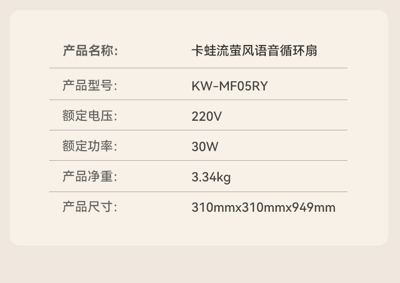 卡蛙亲子陪伴风扇-流萤风(电子语音款)KW-MF05RY