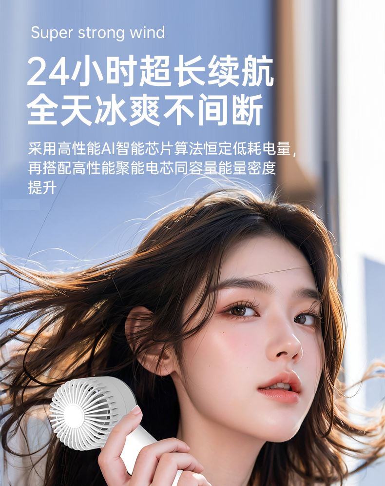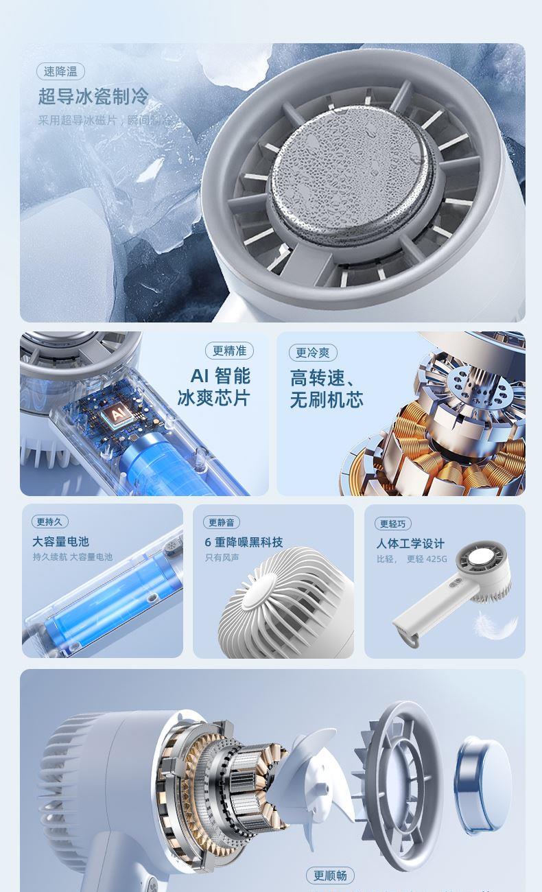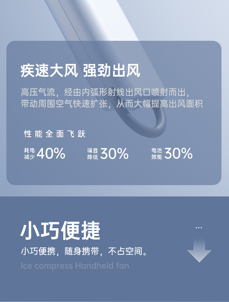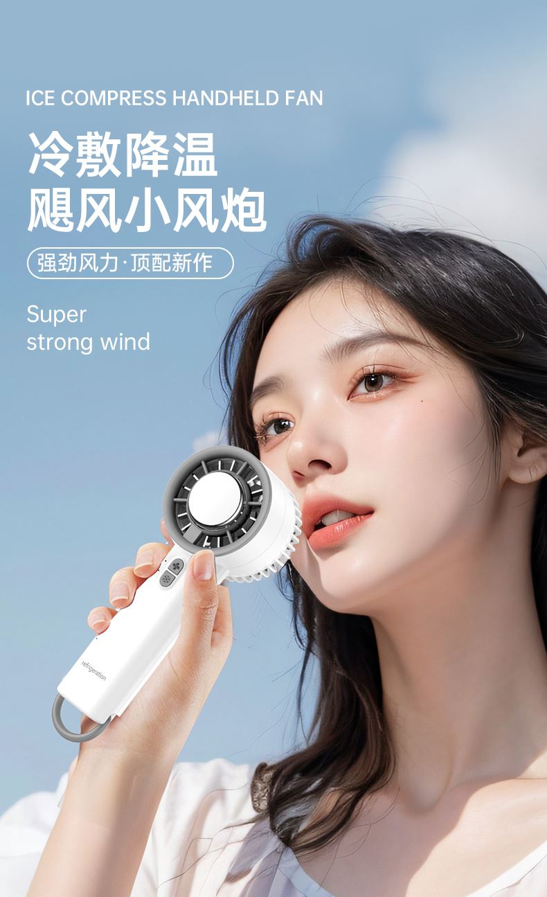 电池容量:1500mAh 产品尺寸:6*6*15.5cm 产品尺寸:6*6*15.8cm/200g 外箱尺寸:51*33.5*52.5cm/90台/18kg 产品颜色:灰色、白色、蓝色 产品标配:彩盒、主机、说明书、数据线 3档大风力,超导冰瓷制冷,极速降温 带登山扣,可手持、可桌面、可挂吊 1500mAh大电池,长续航