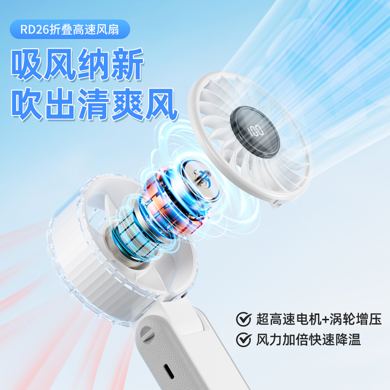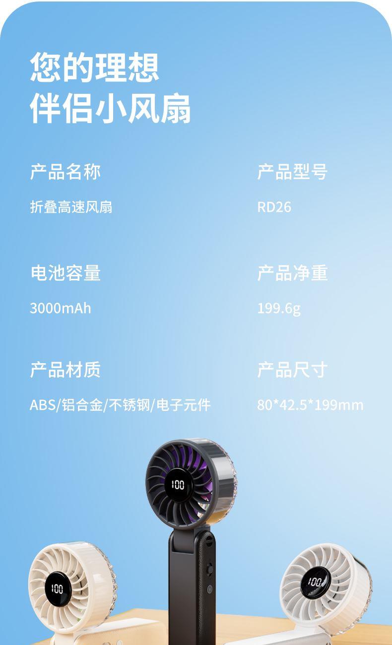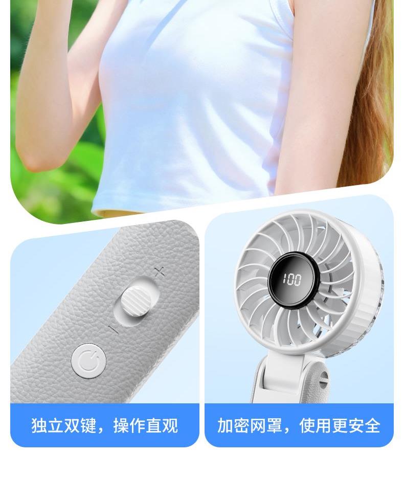 右心新款折叠手持风扇100档可桌面可挂脖RD26