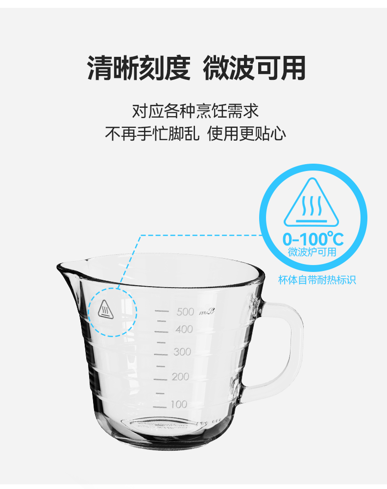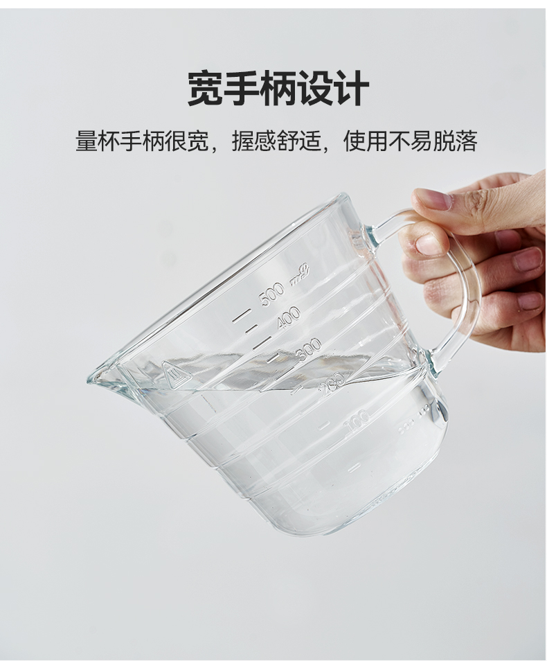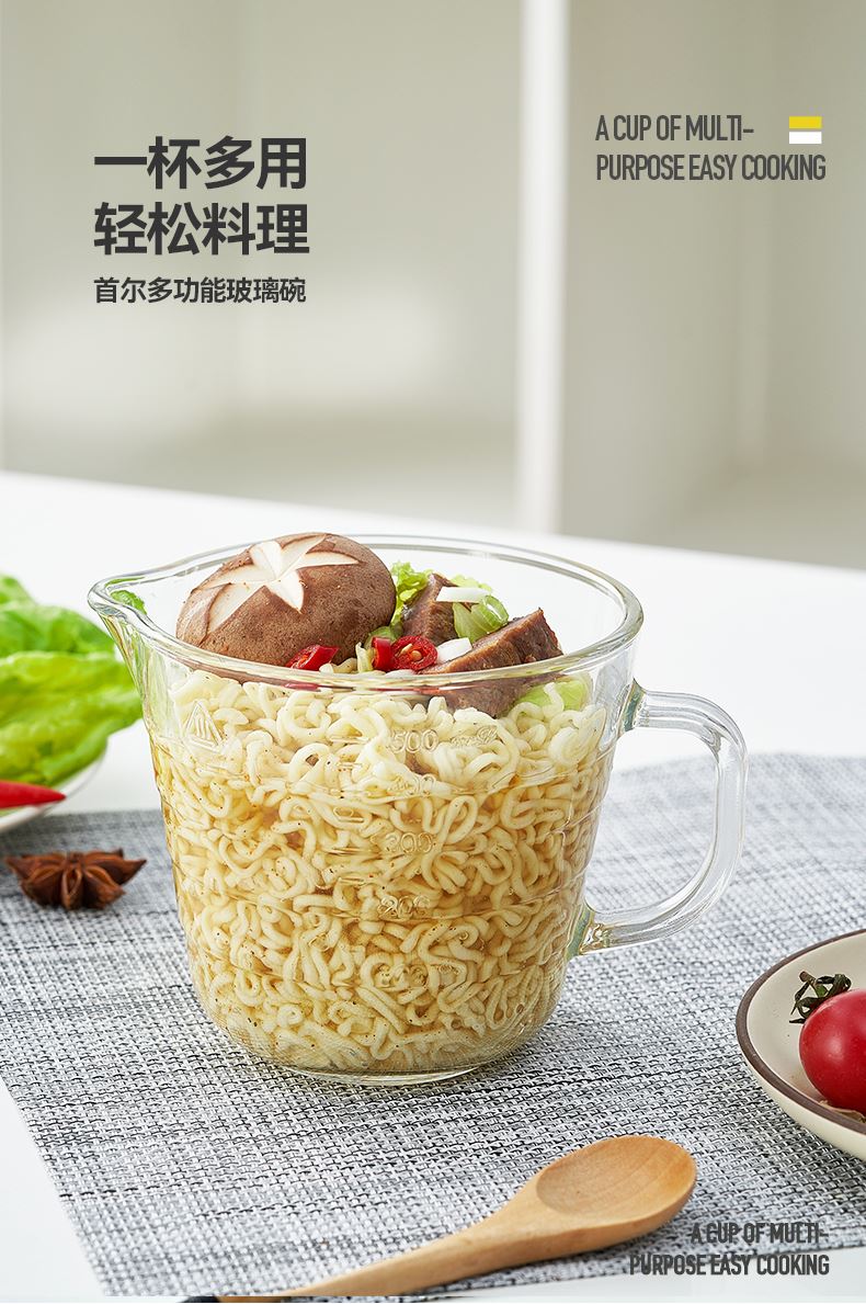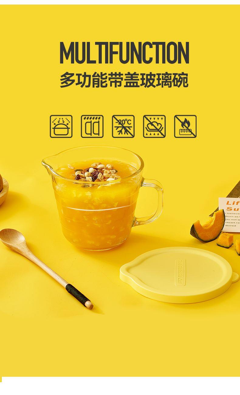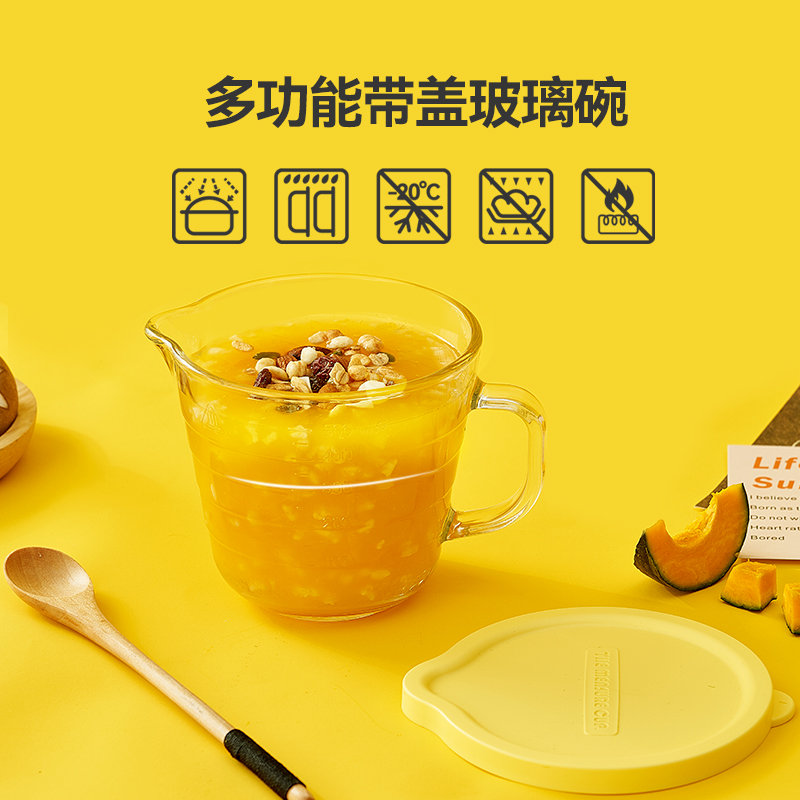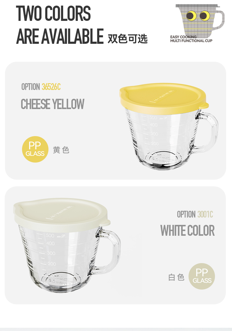 一杯多用轻松料理首尔Seoul玻璃料理杯 黄色盖子与简约玻璃搭配,为美食加分 多种烘焙材料可对应刻度量取使用 贴心刻度设计,多种烘焙可用称量,辨识容易,使用更方便 多种用途,也可以简单的微波炉料理杯使用,家庭必备品。 500ml容量设计,纵享一个人早餐 营养早餐,燕麦牛奶.诉说生活仪式感。 倾斜嘴设计,倾倒液体时流畅方便,更加个性化,使用会更贴心 清晰刻度微波可用,对应各种烹饪需求不再手忙脚乱使用更贴心宽手柄设计 量杯手柄很宽,握感舒适,使用不易脱落: