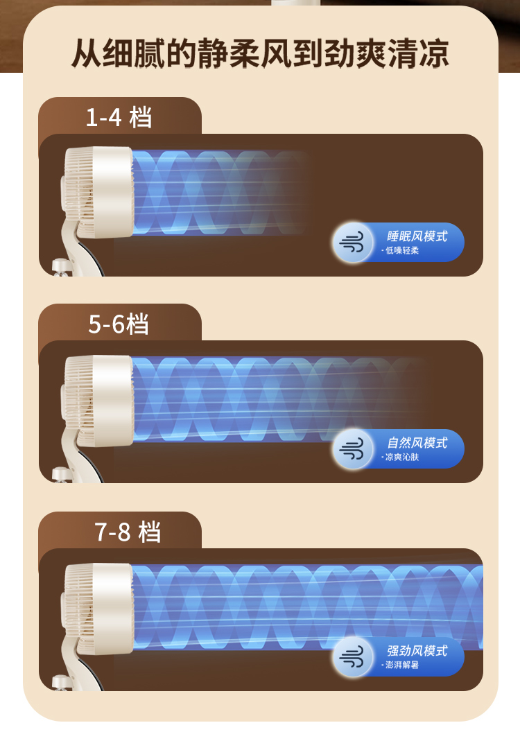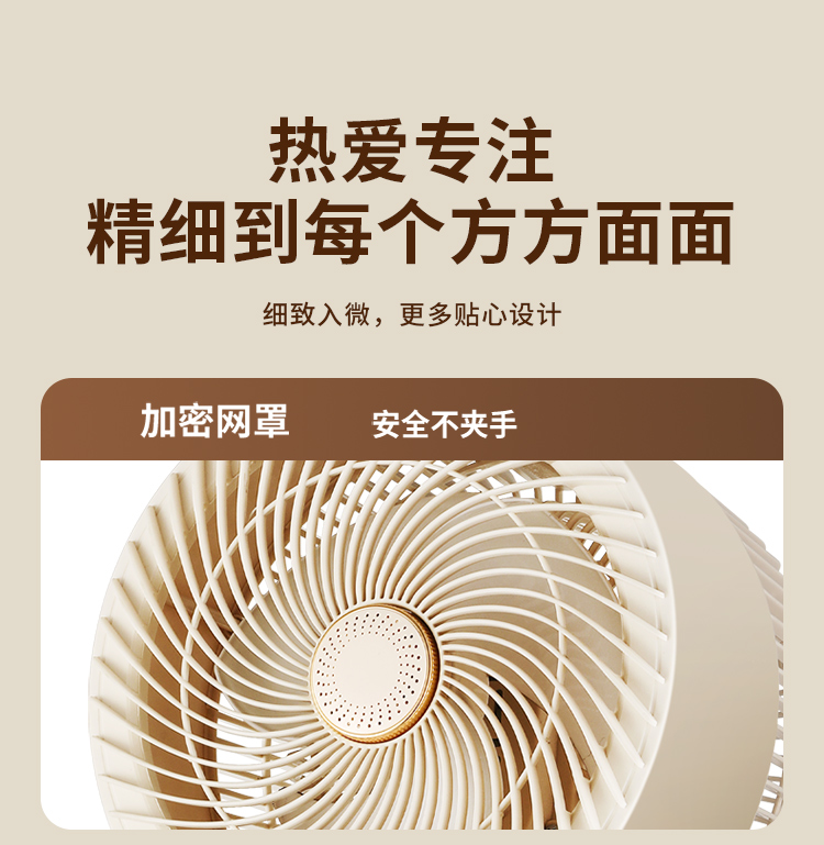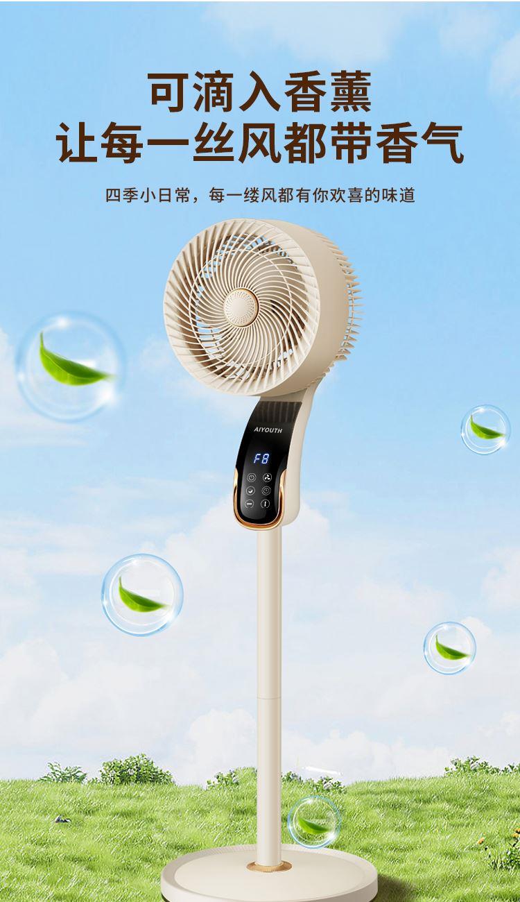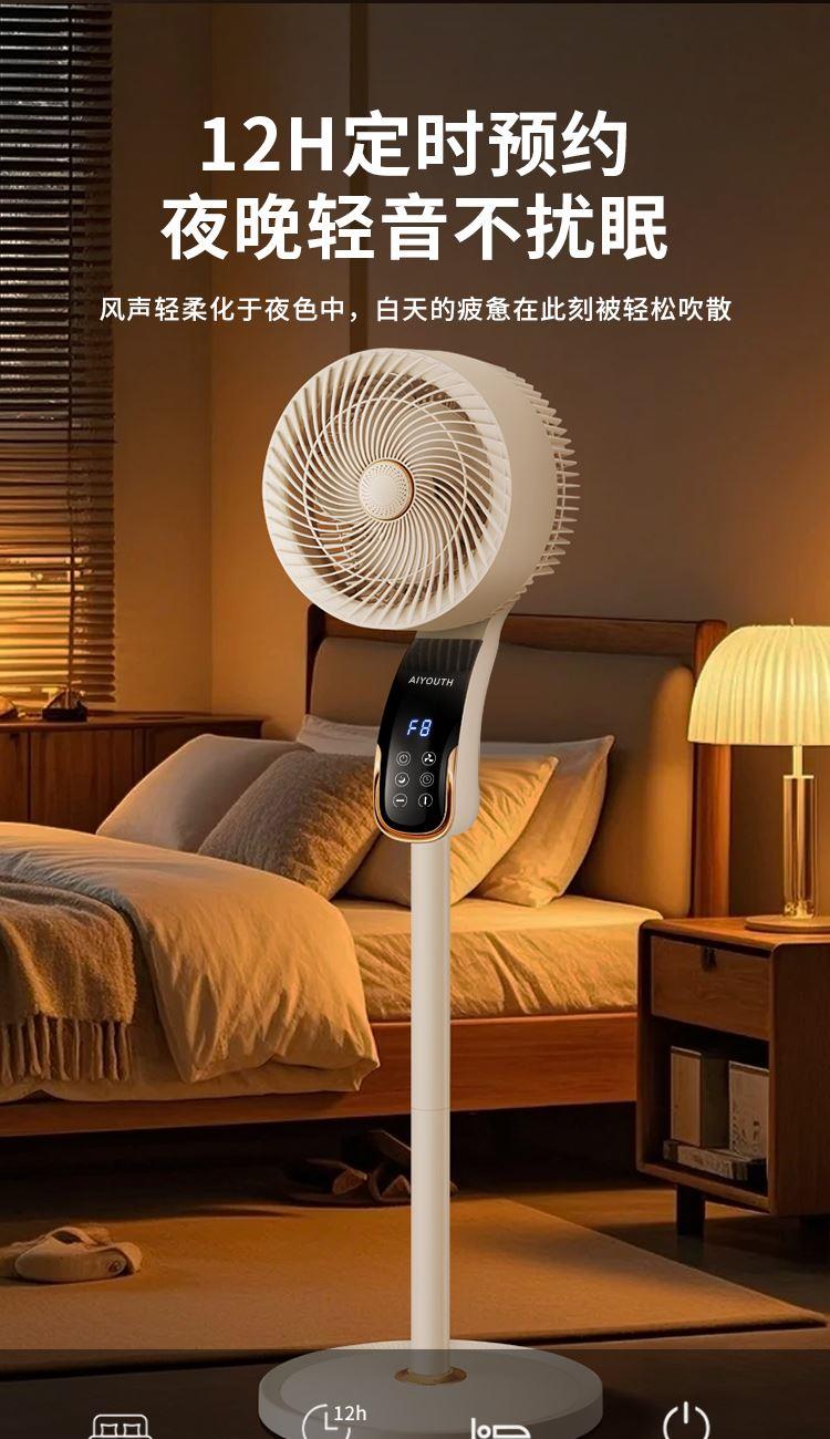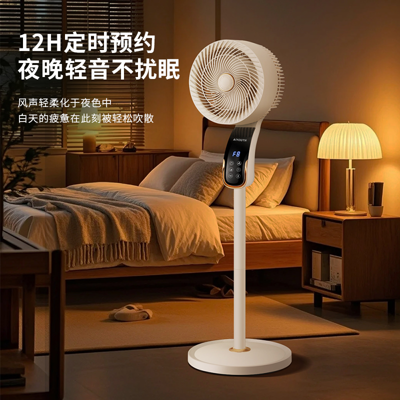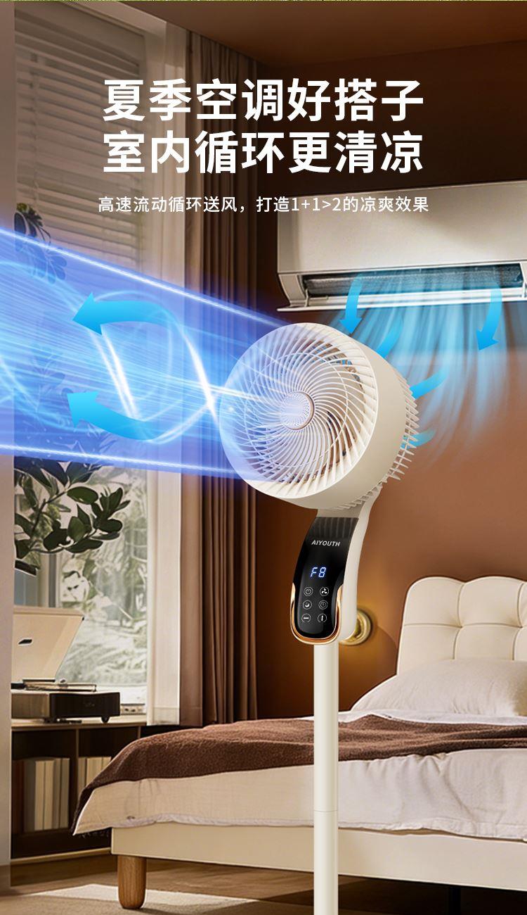 额定电压:220V∽ 额定频率:50Hz 额定功率:35W 产品毛重:3.63kg/台 产品颜色:卡其色 包装尺寸:490*265*350mm 产品档位:8档风速 包装清单:底座、机头、伸缩杆*2、遥控、说明书 主要材质:PP 1.LED触控面板,直观操控,灵敏响应 2.8档风速可调,柔风至强风,适配多场景需求 3.智能语音交互,解放双手,老人小孩轻松使用 4.三重操控系统:语音、遥控、LED触屏,随心选择 5.内置香薰功能,送风同时清新空气,升级使用体验 6.台地两用设计,三档高度调节,桌面/落地自由切换