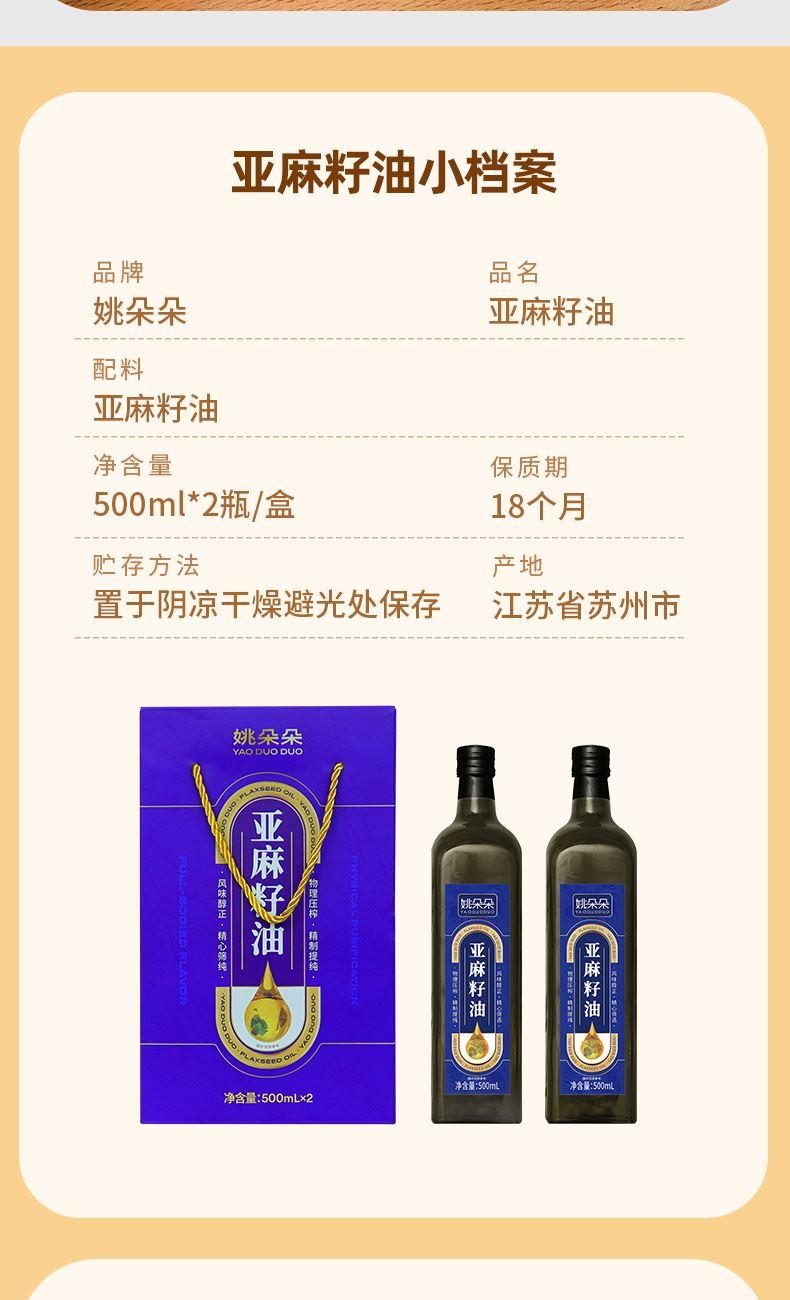 姚朵朵亚麻籽油1000ml盒装(500*2)