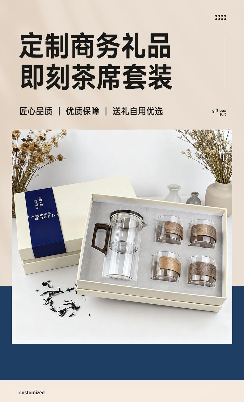 无需专业茶台,不计复杂流程。这套飘逸茶具专为现代生活设计:一壶四杯,配置周全,让您在任何场合都能瞬间布席,温暖待客。无论是办公室的短暂休憩,还是客厅的突然到访,它都能让一杯好茶及时奉上,让分享变得更简单,让情谊在茶香中即刻升温。这不仅是一套茶具,更是一种随心随性的待客智慧。 配置:一壶四杯 材质:高硼硅玻璃+胡桃木 容量:620ml 尺寸:8*15.5cm
