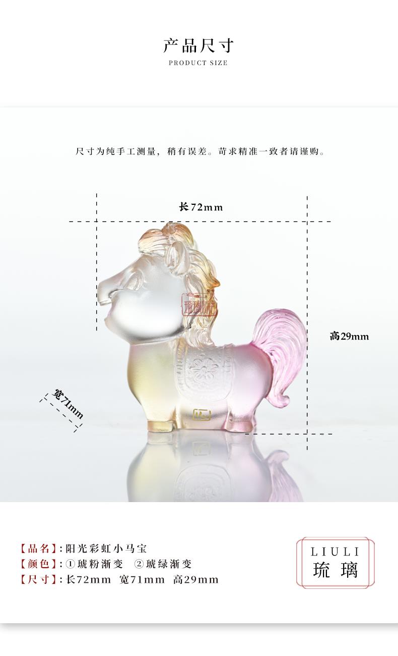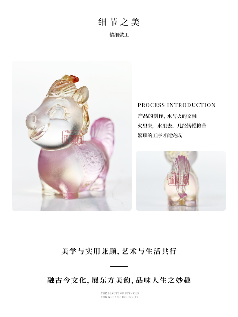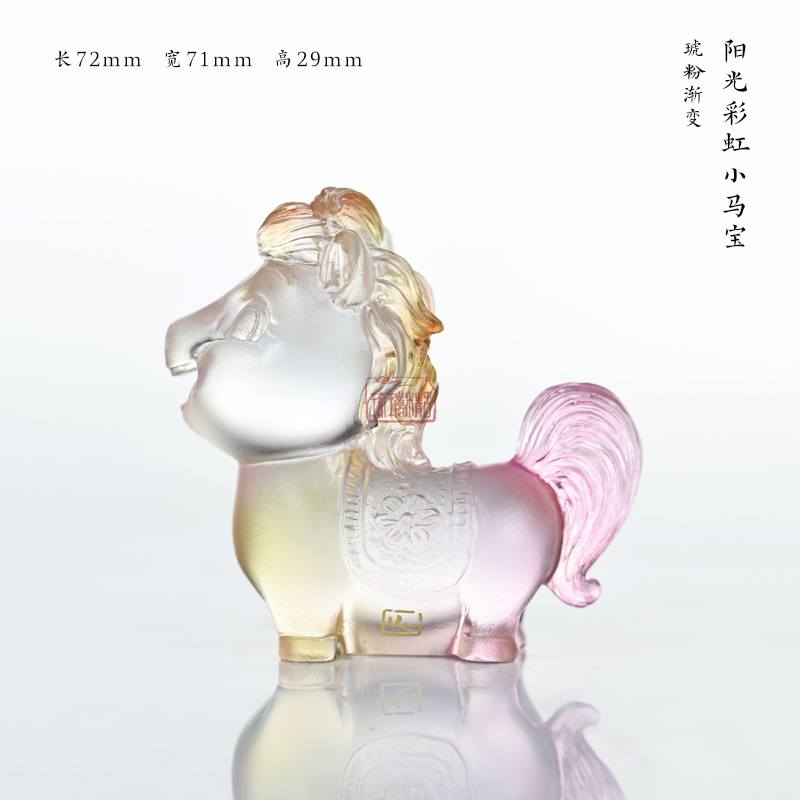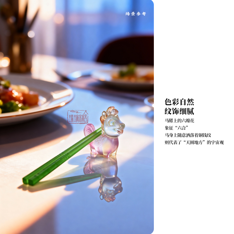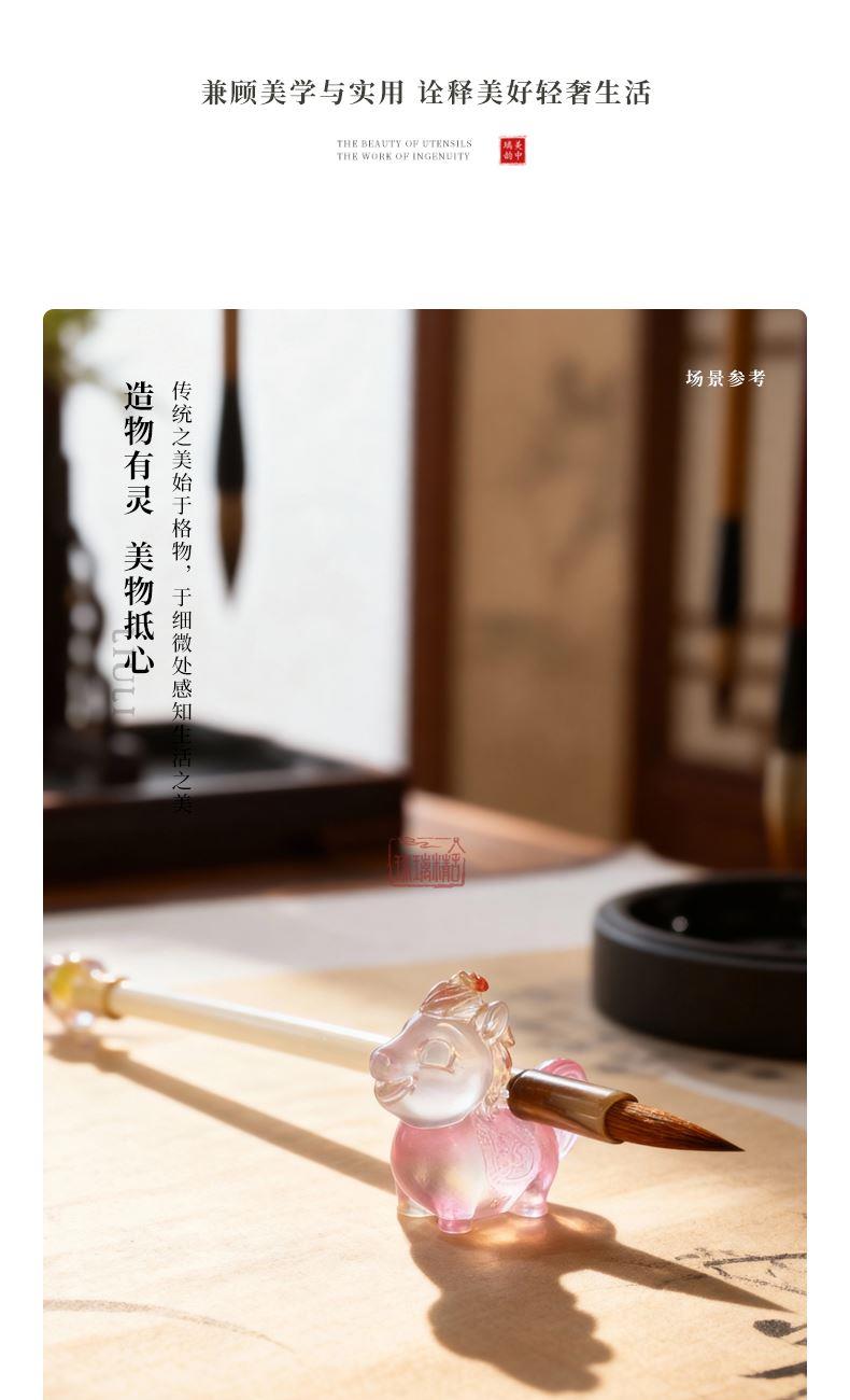 【功能】茶搁、香插、笔搁 【颜色】①琥绿渐变 ②琥粉渐变 【尺寸】72*71*29mm(长*宽*高) 【礼盒尺寸】167*145*64mm (长*宽*高)配套礼袋 【备注】附赠线香一盒 以中华生肖哲学中的「午马」为灵感,撷取大唐盛世自由奔放、包容自信的精神内核,融合现代审美创造而成。此茶搁以马为形,摒弃了传统骏马高大形象的凌厉感,赋予其体态圆润、玲珑可爱的现代情感表达,既延续传统生肖文化的吉祥寓意,又契合当代富足的社会环境和年轻化审美,寓意在安定祥和的当下,我们同样可以守护内心那份纯粹的愉悦与松弛。生肖为形:以十二生肖中的马为灵感,参考了唐代三彩小马的造型,与高大威猛的战马不同,这种小马的造型,往往体态圆润,神情温顺。反映了在社会稳定、物质丰盈的背景下,人们对美好生活的细致追求与乐观精神。小马四足稳稳站立,形态乖巧安详,透出一种“守成”的安然与“享有”的满足。