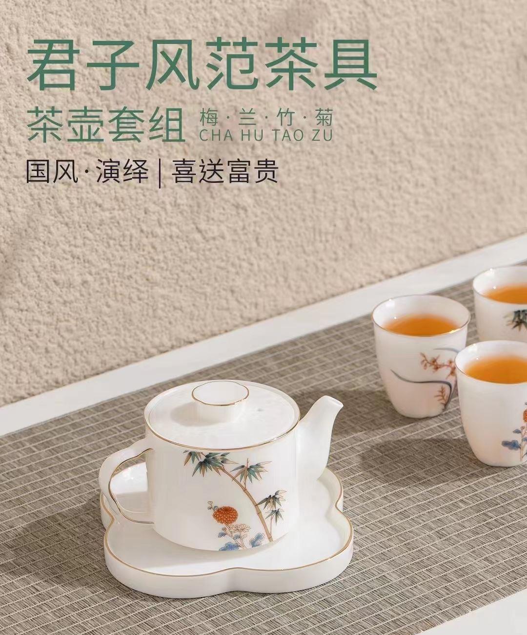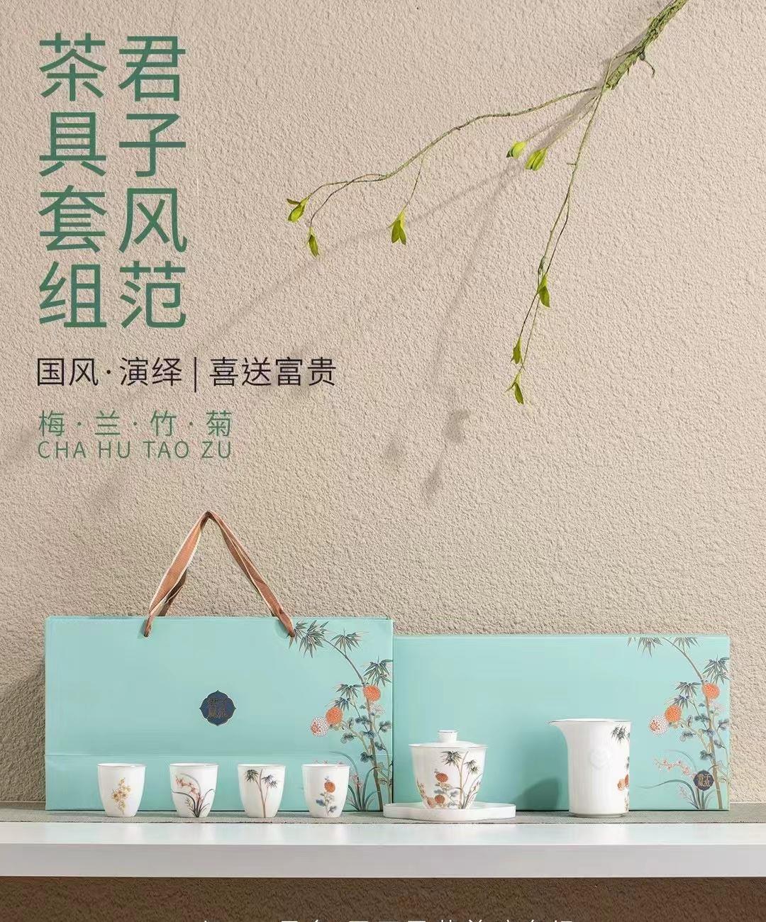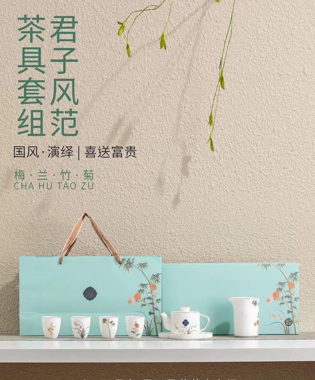尾桥下窑羊脂玉瓷君子风范功夫茶具套装商务礼品端午节伴手礼