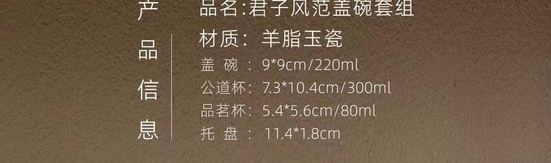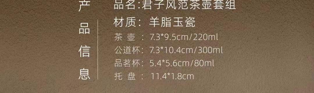 配置1:茶壶*1,茶海*1,茶杯*4,壶承*1. 配置2:茶碗*1,茶海*1,茶杯*4,壶承*1. 尺寸:盖碗9*9cm 容量220ml, 茶壶7.3*9.5cm 容量200ml, 茶海7.3*10.4cm 容量300ml, 茶杯5.4*5.6cm 容量80ml, 壶承11.4*1.8cm。