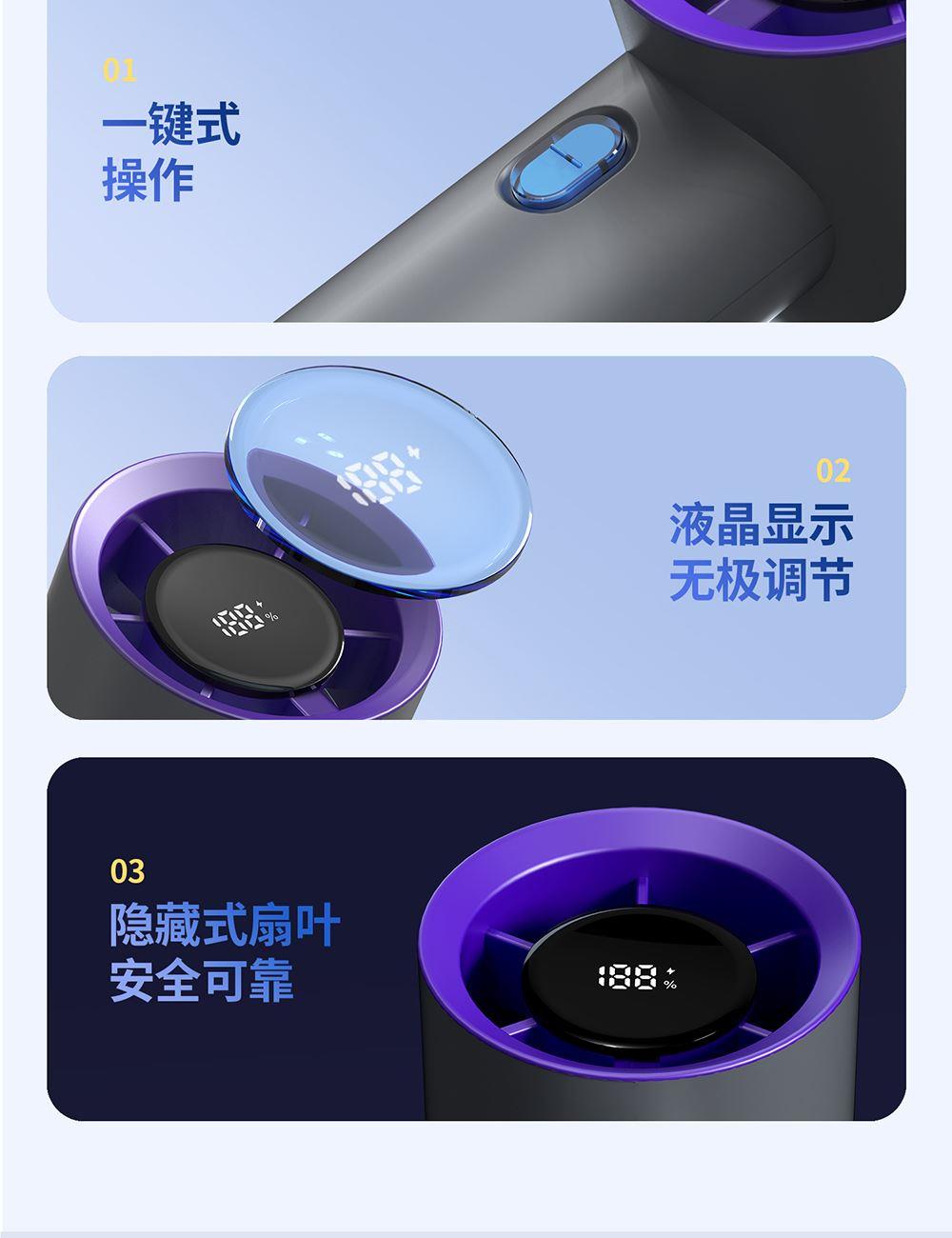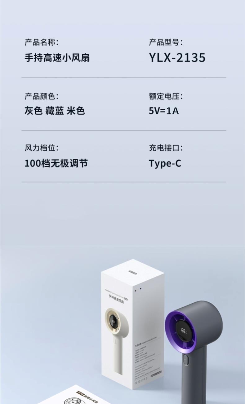 遥里逊桌面便携手持小风扇USB充电数显电风扇YLX-2135