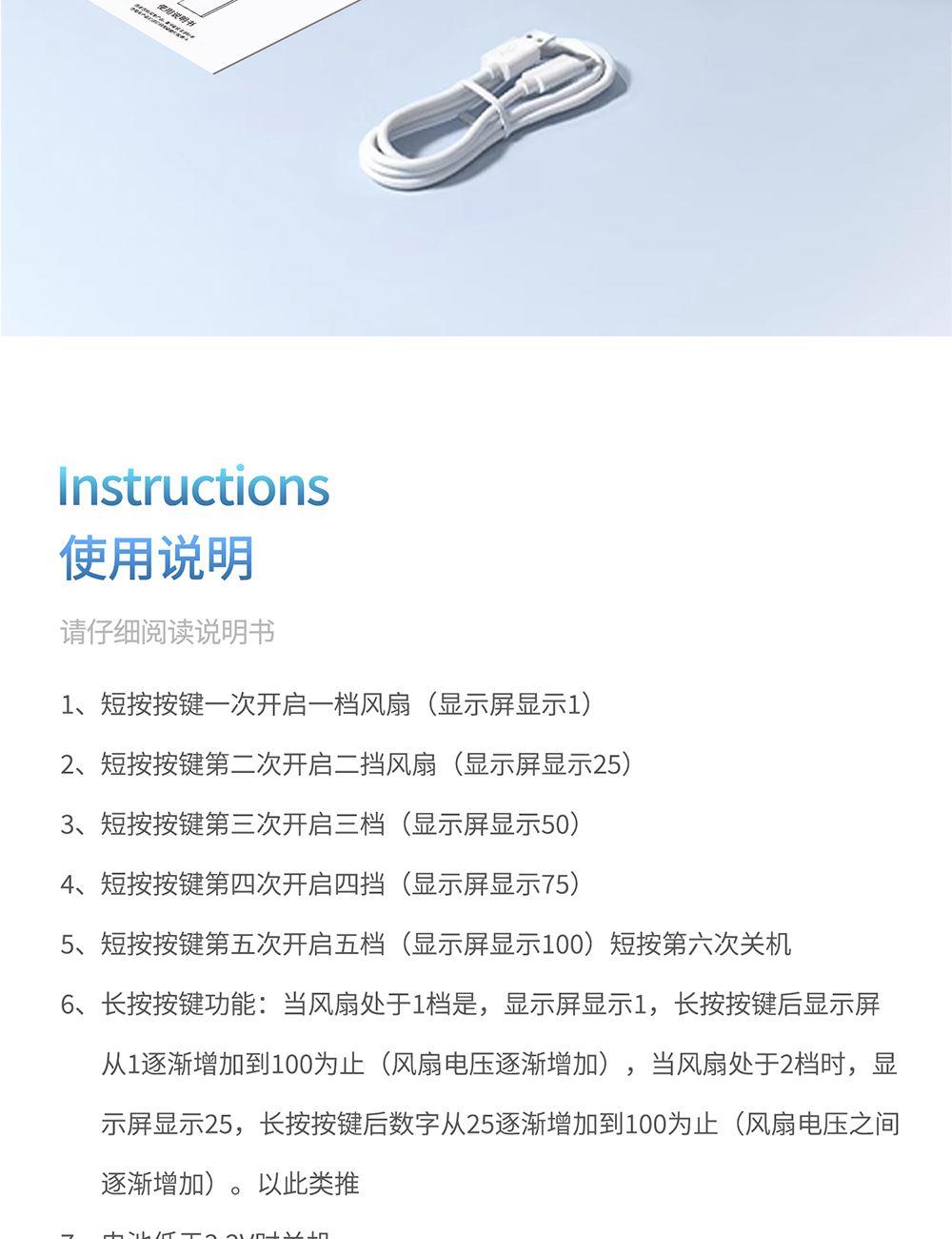 产品颜色:米色 深灰 深蓝 产品尺寸:14.5*5.8*5.4cm 产品材质:ABS+PP+PC+电子元件 输入电流:5V/1A 电池容量:2000mAh 功 率:6W 使用时间:4-10小时 产品重量:140g