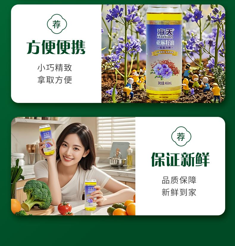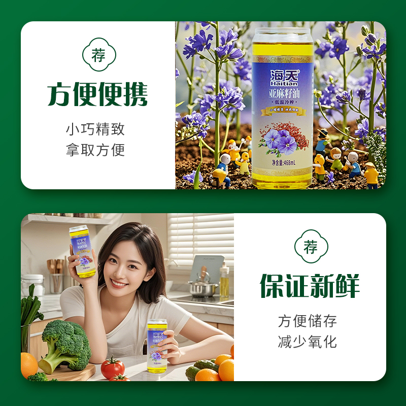 海天食用油非转基因亚麻籽油4件套468毫升*4HT-Y404