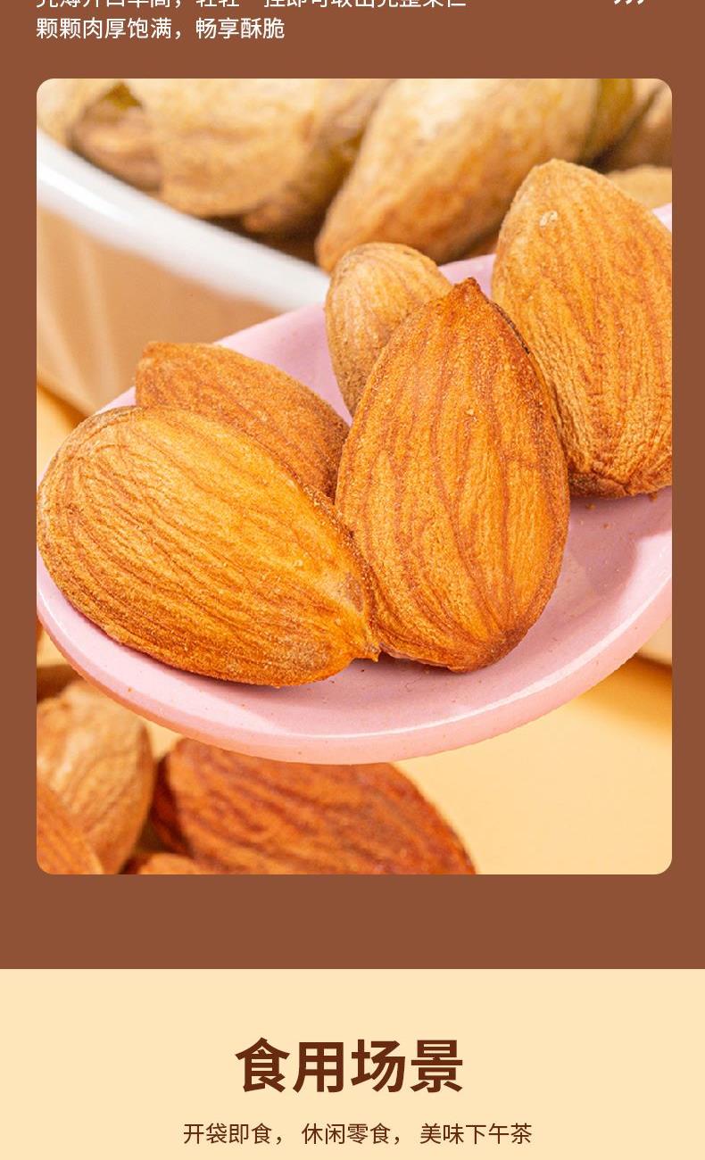 精选新疆巴旦木,果仁饱满如小舟,低温轻焙锁住酥脆,咬下瞬间“咔嚓”声直击耳膜,解压指数满分;天然香料与坚果脂香融合,尾调带一丝奶甜回甘,一颗接一颗根本停不下来,堪称“追剧黑洞”、“办公室摸鱼神器”。独立小包装撕开即享,蛋白质含量高达21%,膳食纤维促进饱腹感,加班熬夜、健身控糖人群的“救命零食”;维生素B6与镁元素舒缓压力,搭配辛香刺激多巴胺分泌,吃出“嘴角上扬”的魔法。