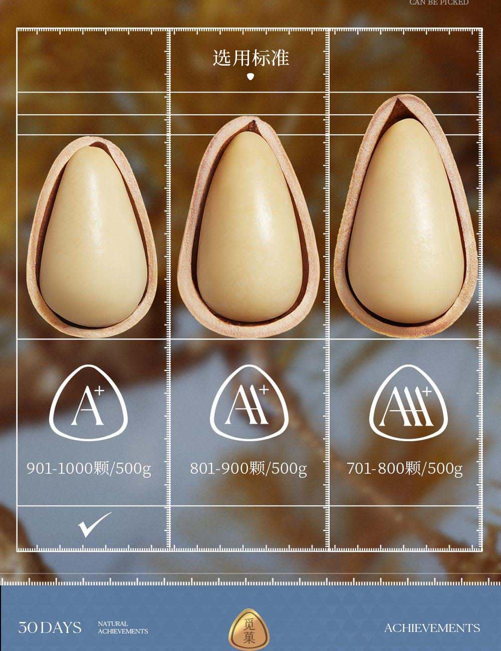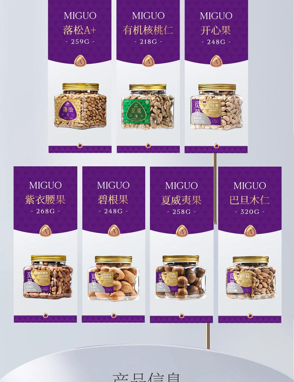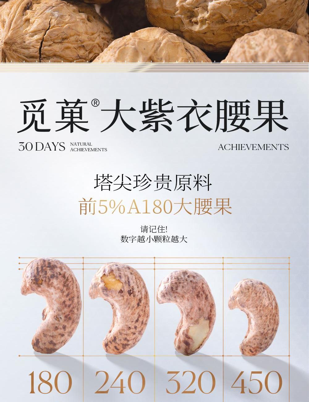 开心果248g A180大紫衣腰果268g 晚松A+238g 落松A+259g 大碧根果248g 夏威夷果258g 巴旦木仁320g 有机核桃仁218g