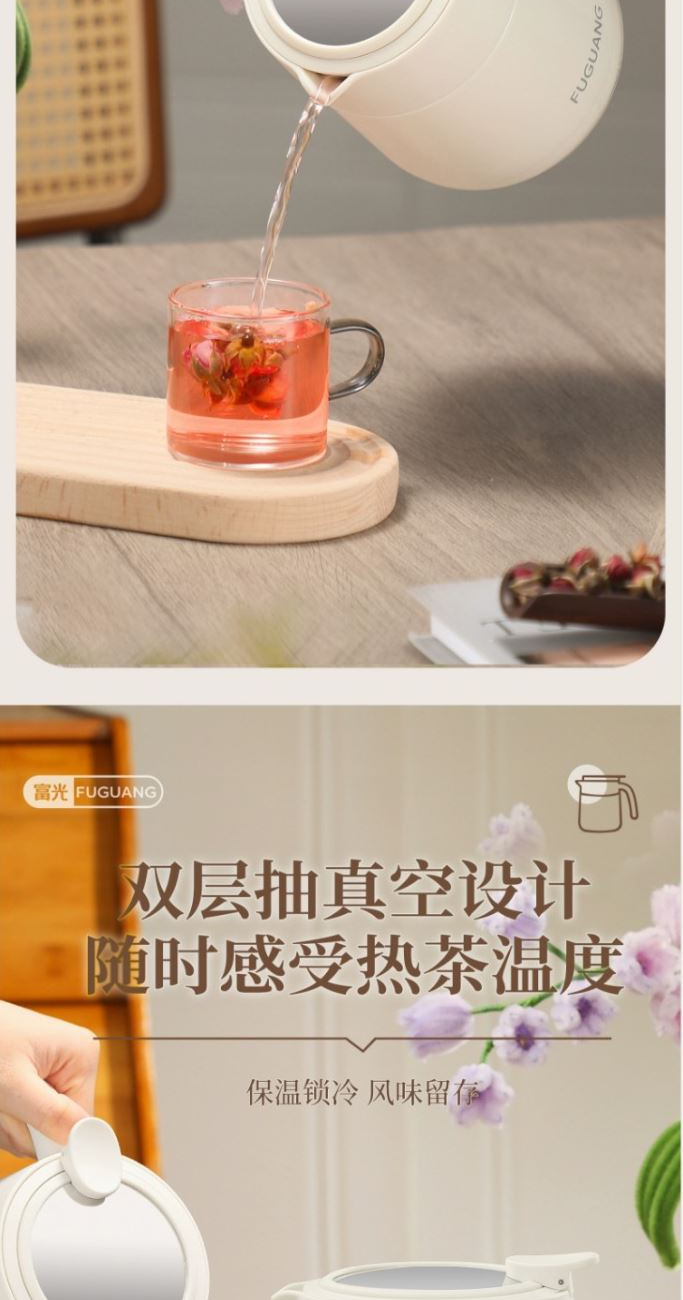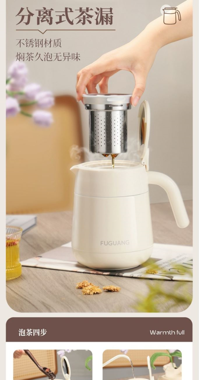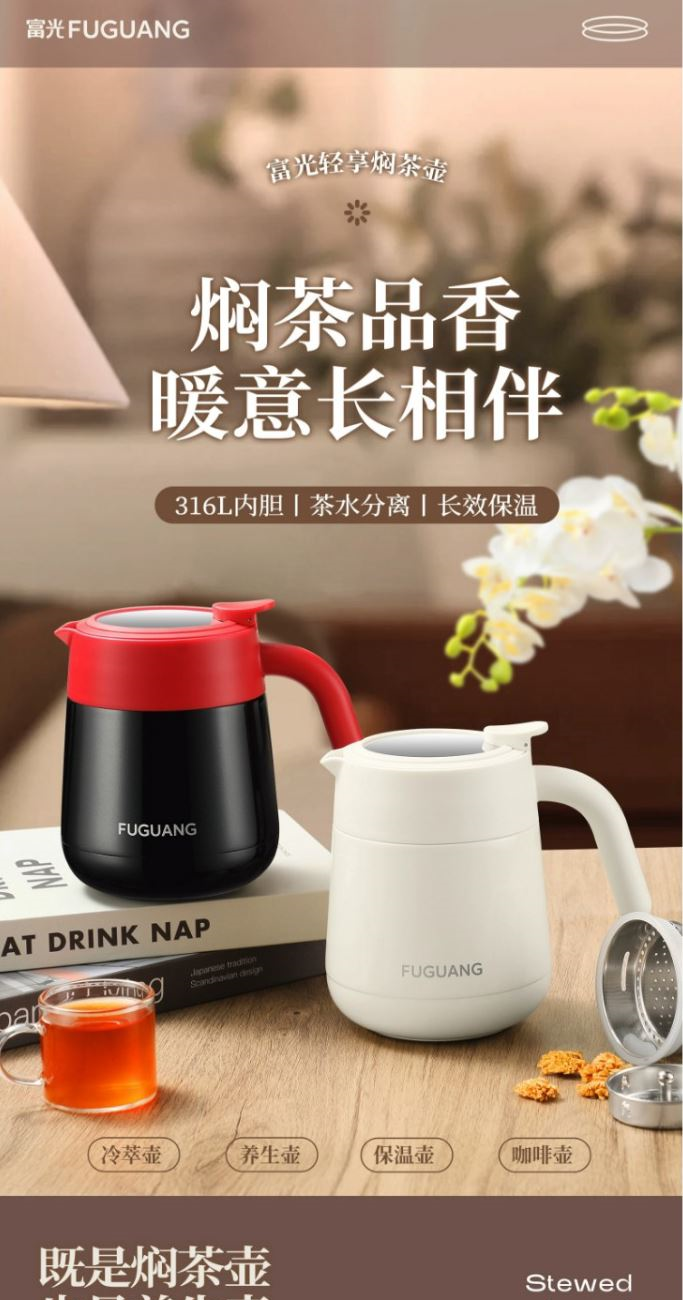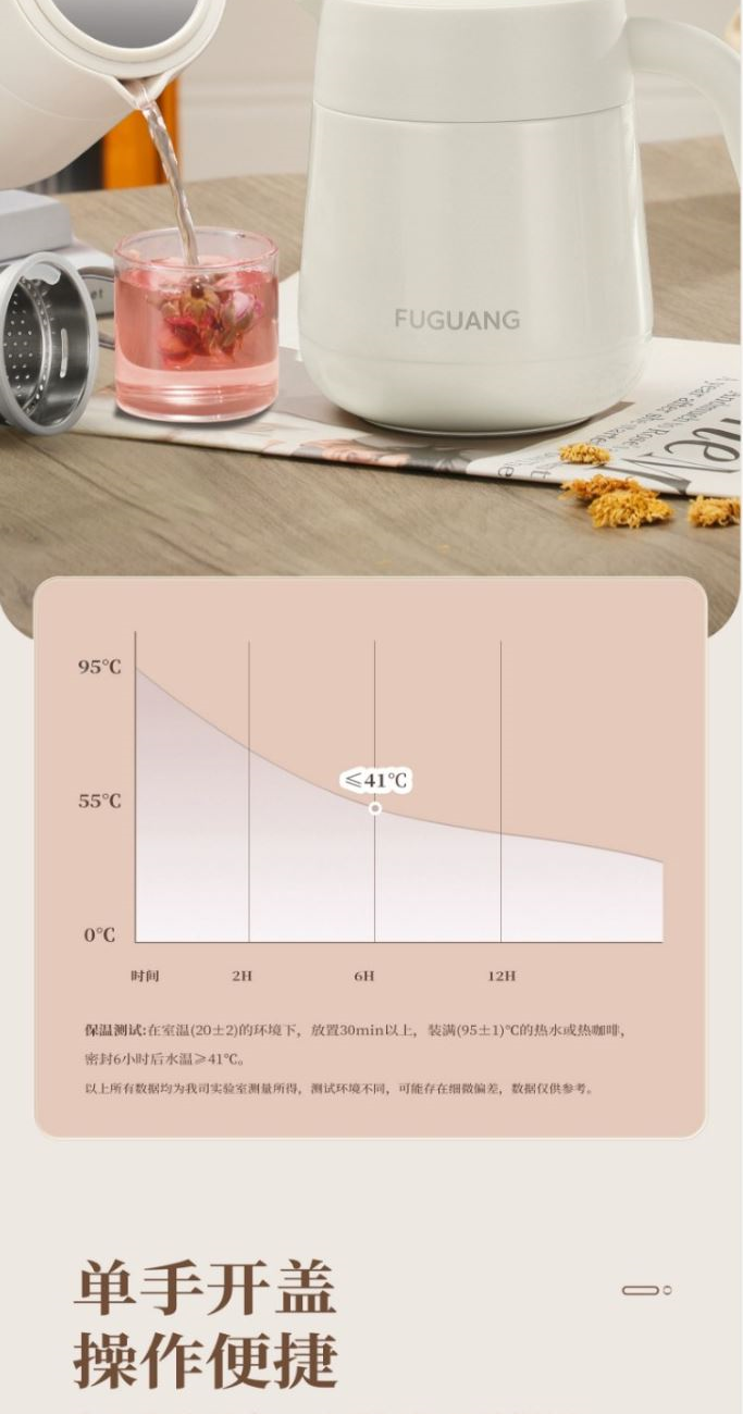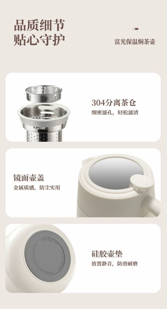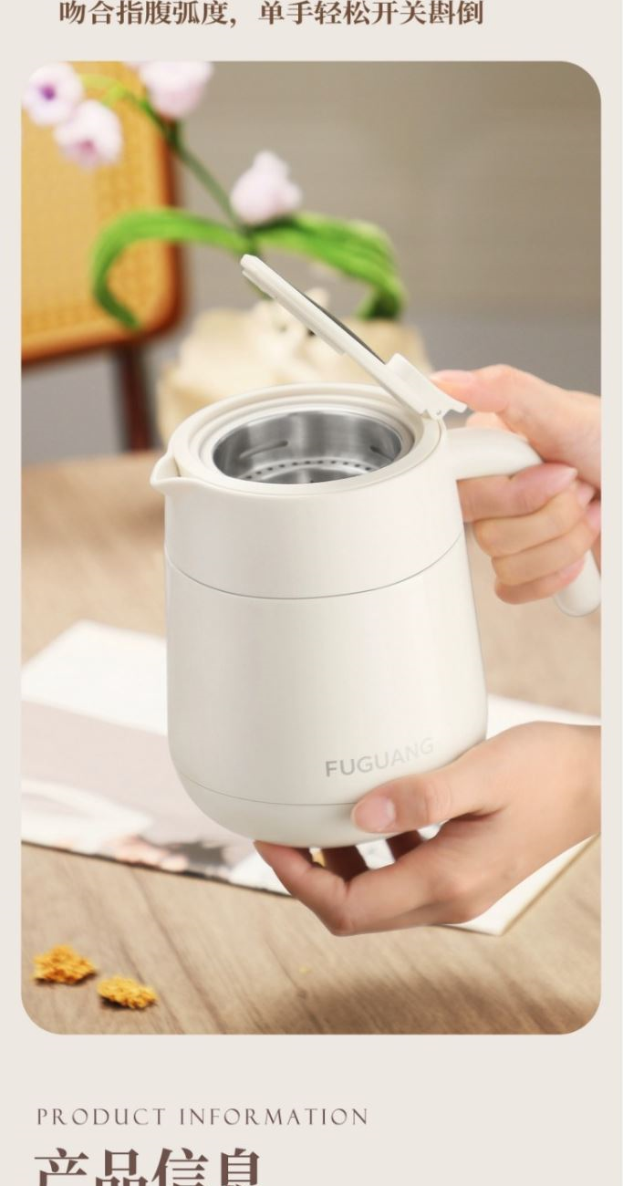 颜色:茶白色 暗夜玫瑰 尺寸:14.5高度*11.5底部直径cm 材质:31L6不锈钢内胆设计,食品级PP内盖,每一处都是安心的材质。 一体式壶盖,搭配食品级pp材质饮用放心,滴水不漏,仿鹰喙出水口防烫伤。 手柄初符合人体工程学设计,提握安全不费力。 包装:单瓦盒