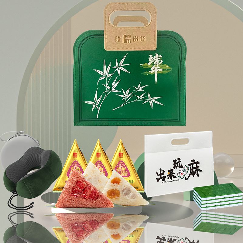 • 黛悦端午节非遗短效保鲜粽子U型枕颈枕麻将户外麻将毛毡包现货
