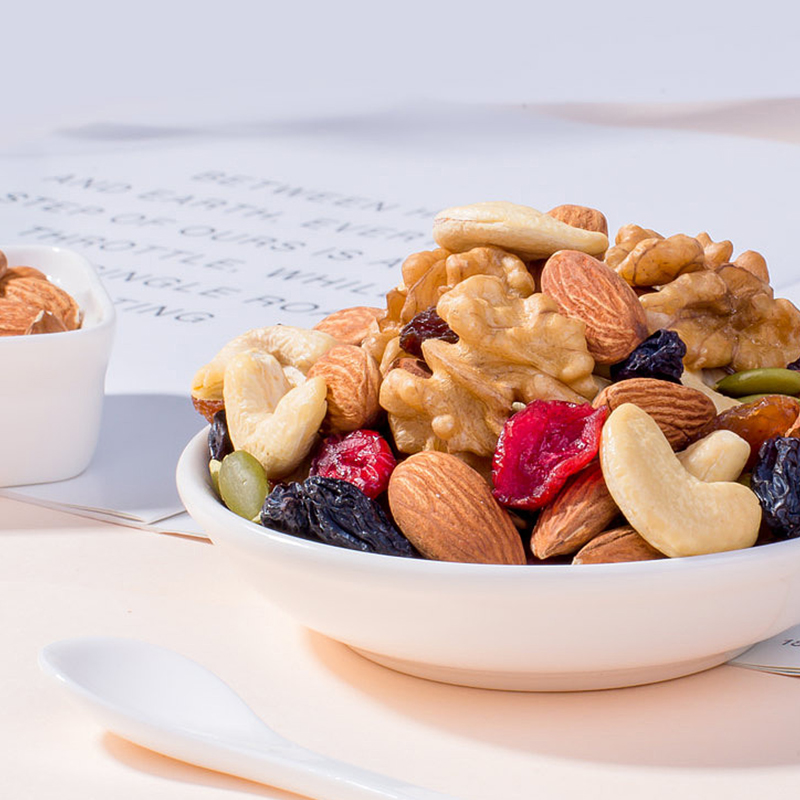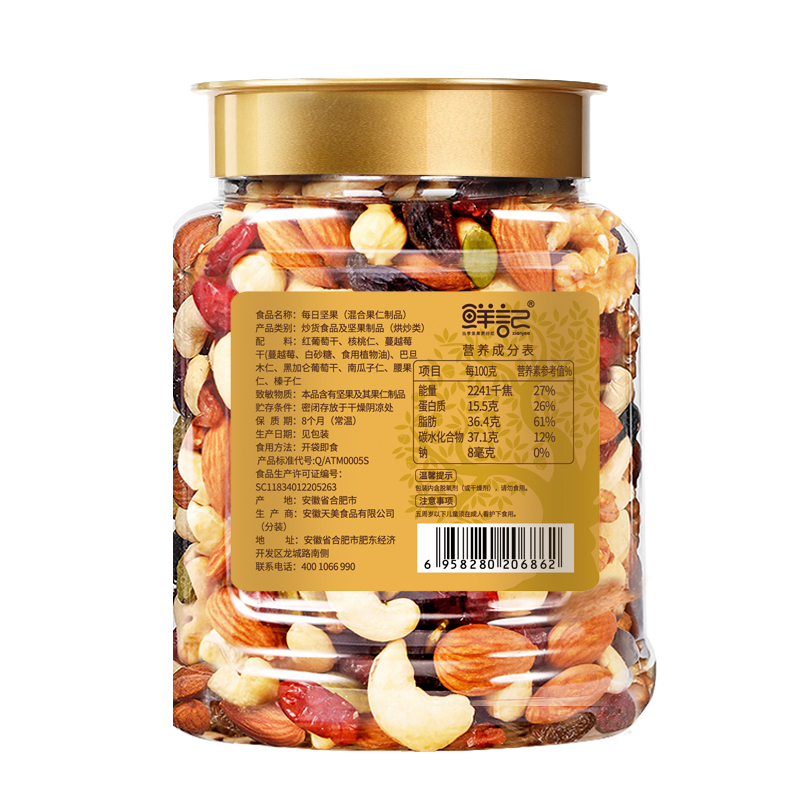 八种新鲜原料,多重营养元素; 果仁原香酥脆,果干新鲜酸甜。