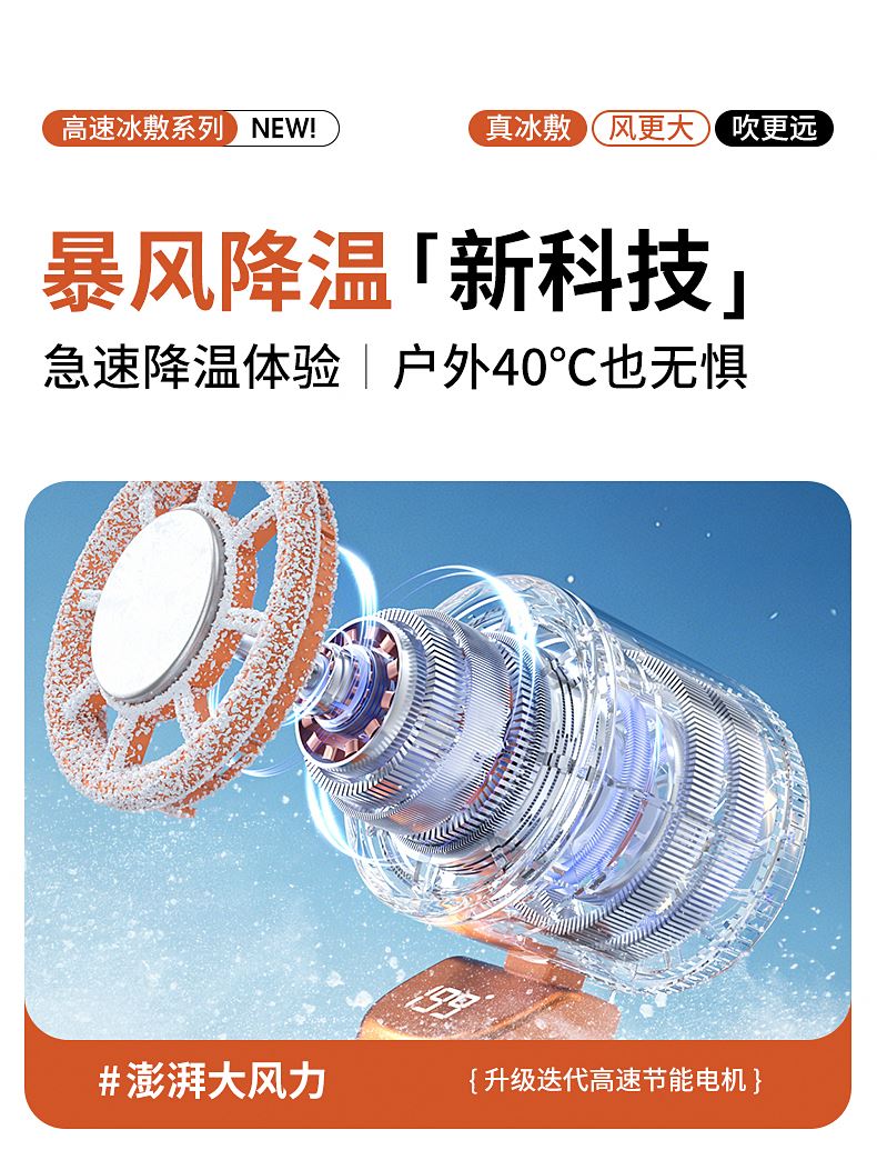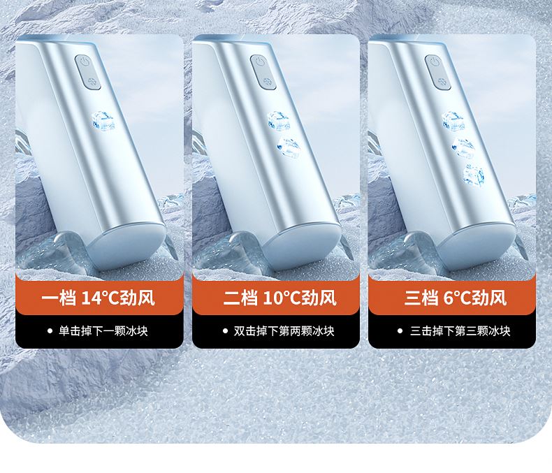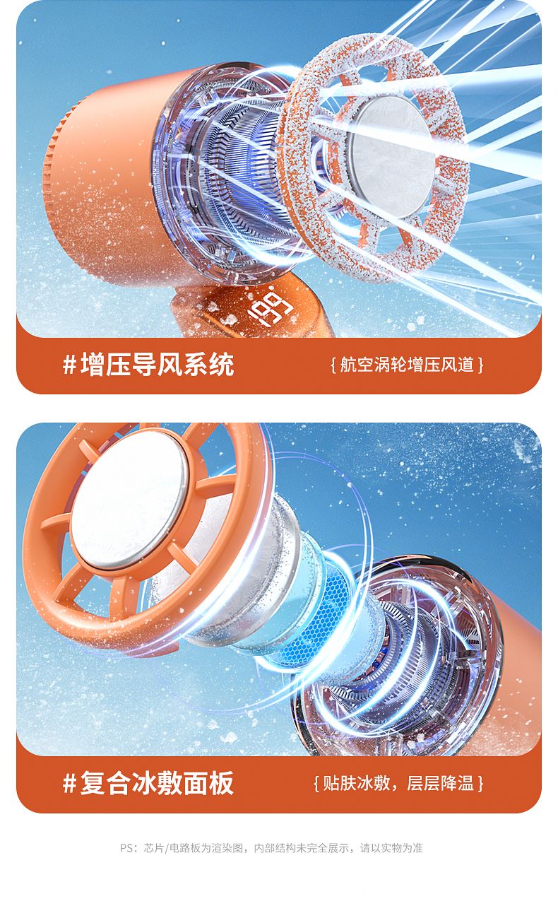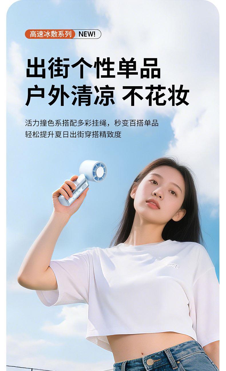 产品材质:ABS 产品功能:199档风力调节 产品容量:3000mAh 产品尺寸:90.5*173*170.5mm 产品颜色:米白色,蓝色,橙色 活力撞色设计,搭配电镀工艺,质感拉满;199档风力调节,超大风力,为你的夏天带来丝丝清凉。ICE智冷系统,3档冷风选择,智能冰感屏,带来不一样的体验。