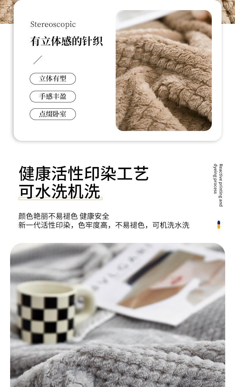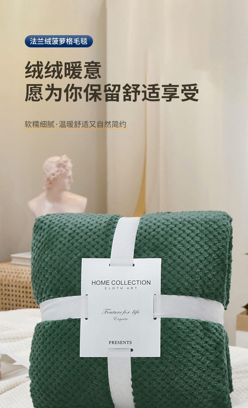 法兰绒菠萝格午睡毯:220克D丝法兰绒,100*150cm重420g,表面覆盖了超柔软的法兰绒绒毛,编织紧密,手感柔顺机洗不掉毛,采用活性印染工艺,更亲肤贴身,卷边工艺,有效固定毛毯边缘,细节满满