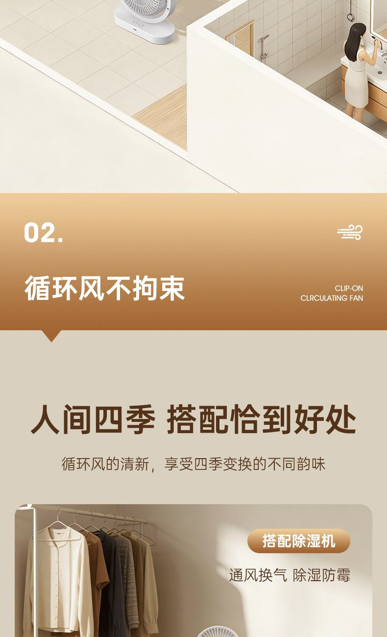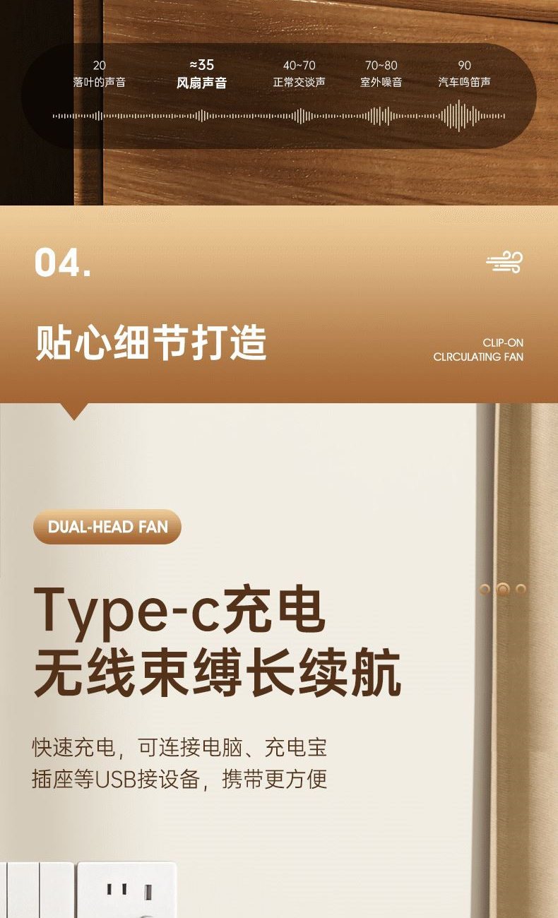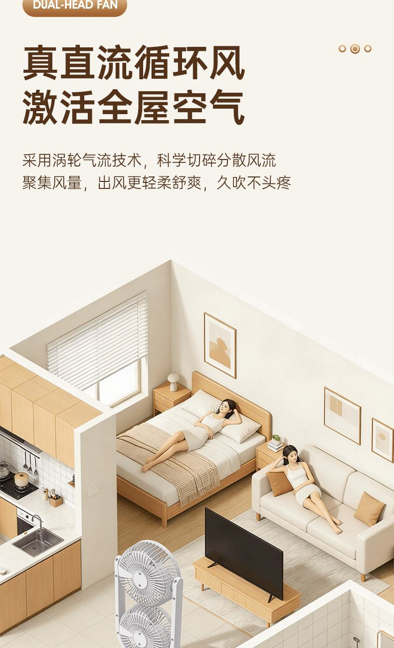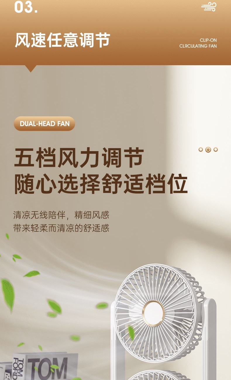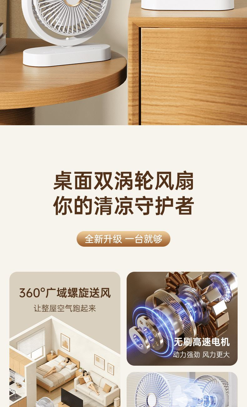 电池容量:2400mAh 产品重量:480g/587g 产品尺寸:18*7.8*36cm 产品尺寸:18*8.5*37cm 整箱数量:74*55*45cm/30个/18kg 产品颜色:白色、粉色、蓝色 5档风可调节,360度角度可调 内置2400mAh大容量电池 双头可独立控制风速 静音无刷电机