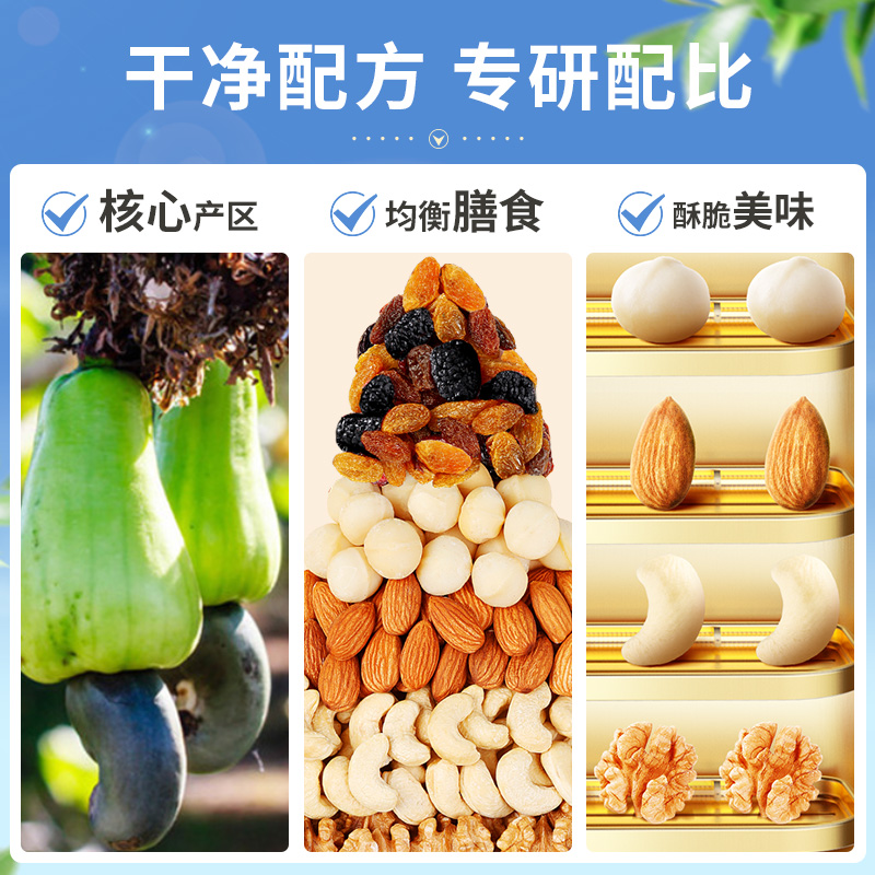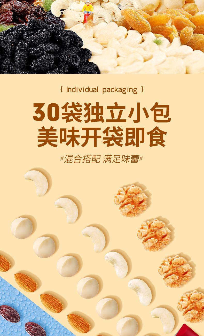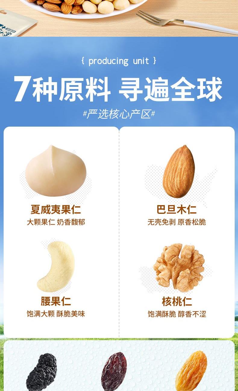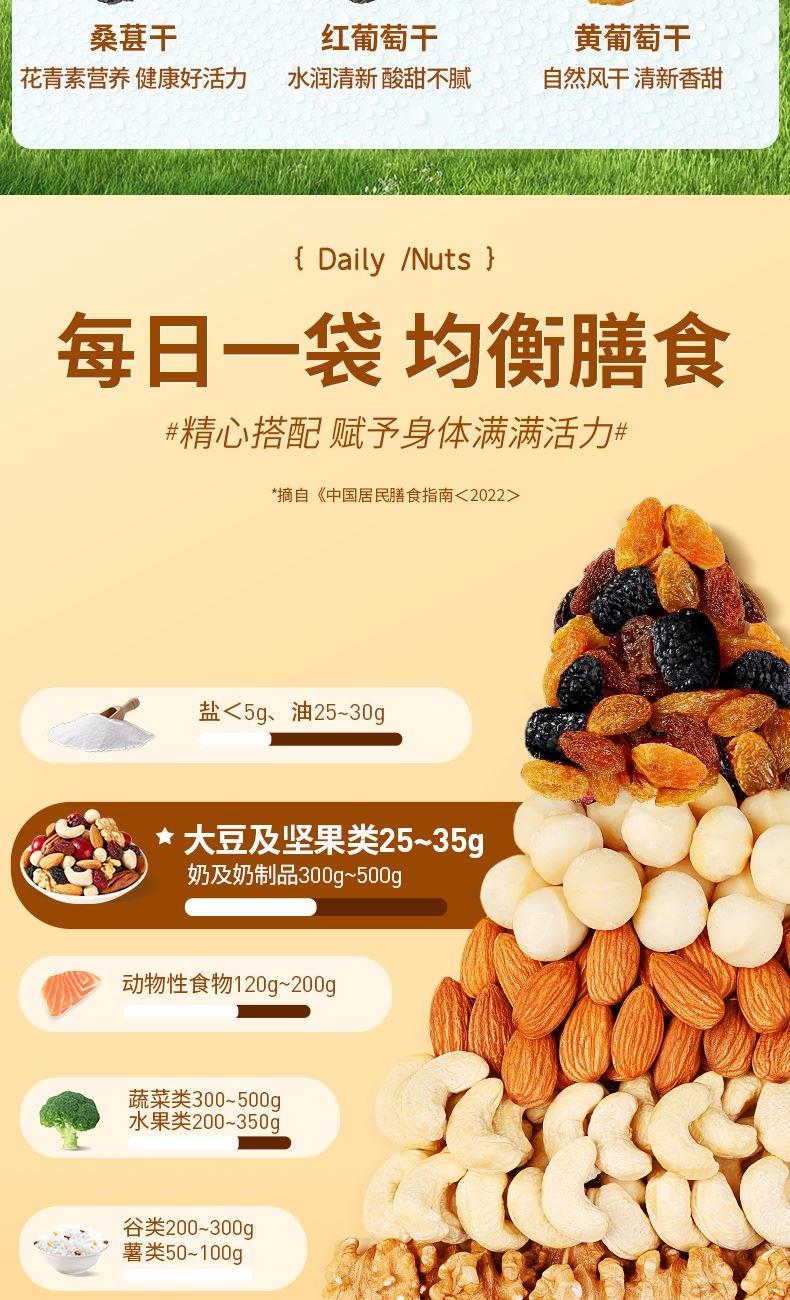 礼盒尺寸mm(长*宽*高):290*127*200 内配:巴旦木仁 腰果仁 带衣核桃仁 夏威夷果仁 桑葚干 黄葡萄干 红葡萄干