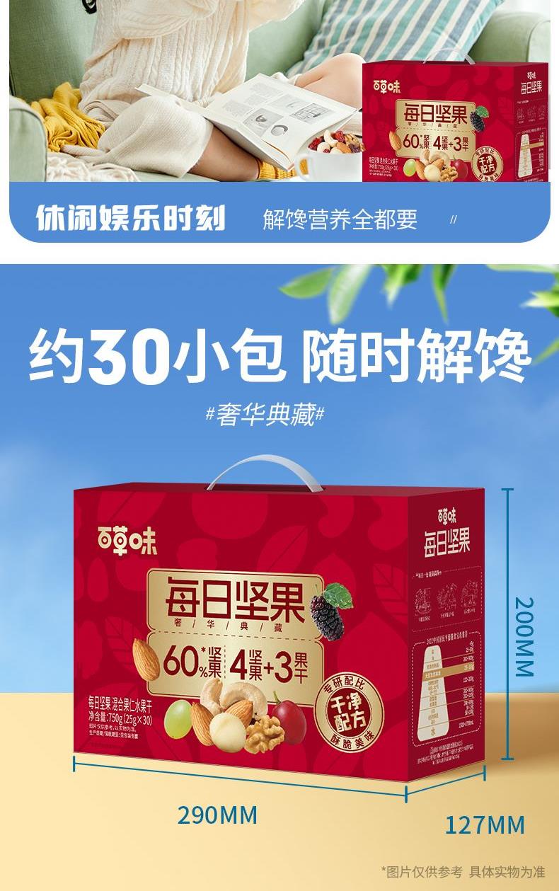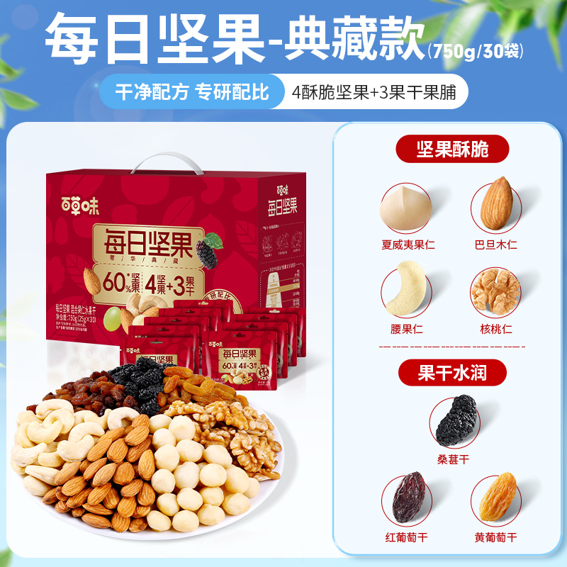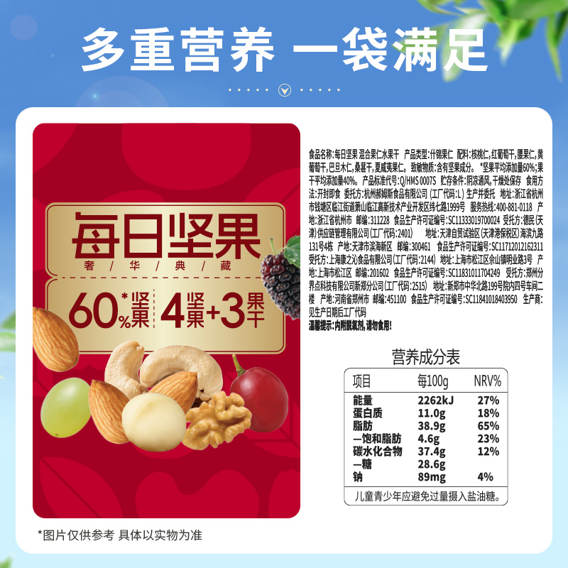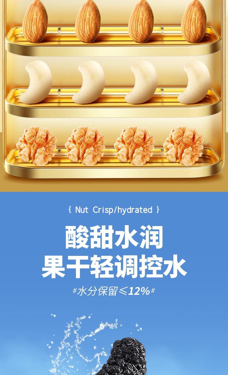 礼盒尺寸mm(长*宽*高):290*127*200 内配:巴旦木仁 腰果仁 带衣核桃仁 夏威夷果仁 桑葚干 黄葡萄干 红葡萄干