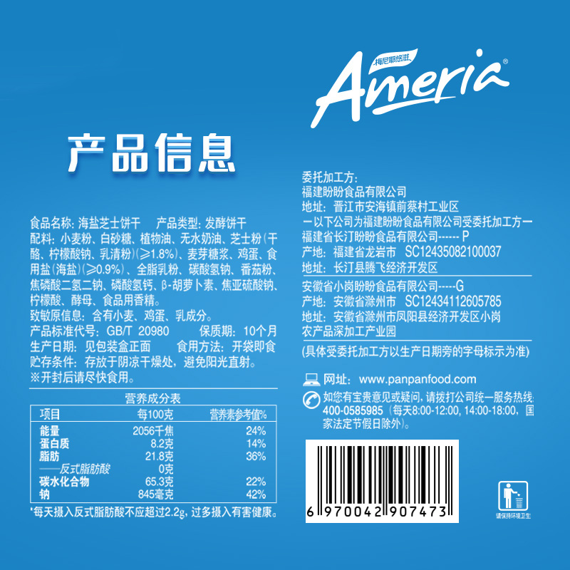 规格:280g 盼盼海盐芝士饼干280g,一口就惊艳! 添加芝士粉,搭配海盐,咸甜交织,口感丰富。 历经6小时自然发酵,饼干疏松多孔,咬下“咔滋”一声,酥到掉渣,吃再多也不干嘴。 小包装,方便携带,解馋,0反式脂肪酸,健康无负担