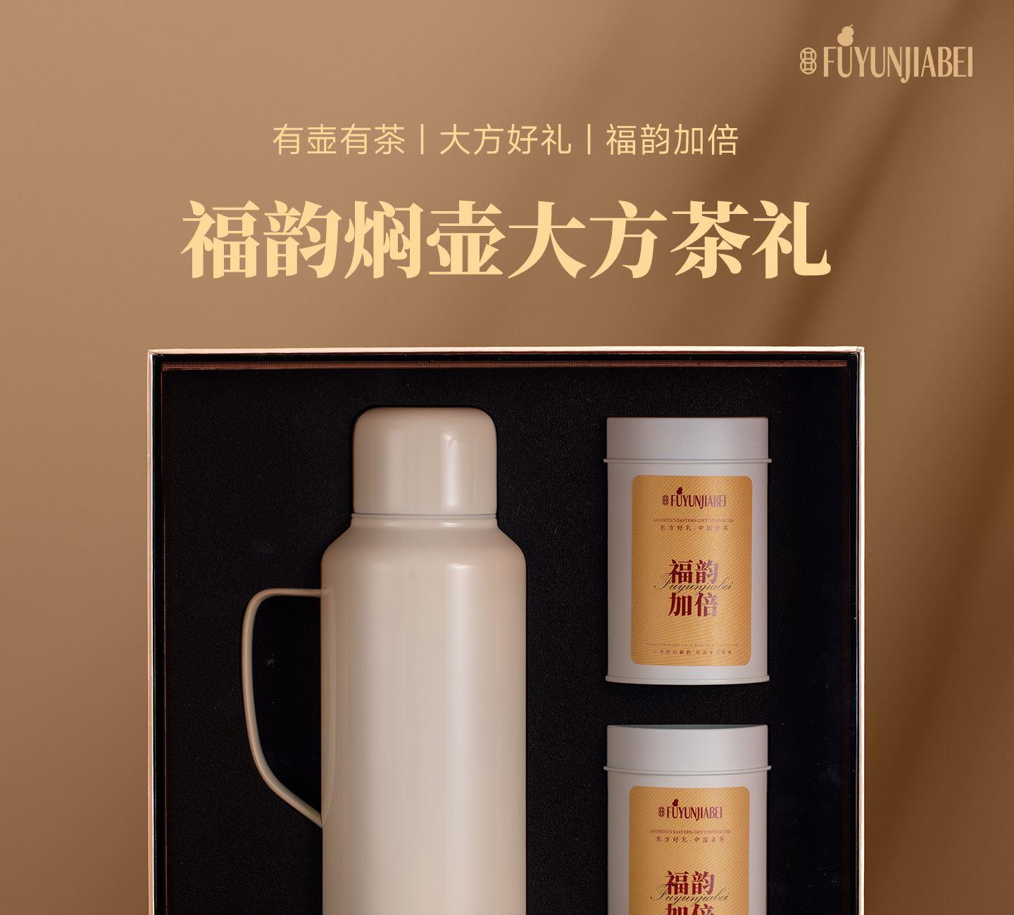 福韵加倍——大方茶礼 规 格:礼盒:310x310x105mm 手提袋:320x340x110mm 材 质:焖泡壶:316不锈钢 容量:1000ml 茶 叶:定制版 磻龙号2016老树寿眉白茶龙珠 3克/颗 120g*2 罐 手提袋:纸袋*1 寓 意:福韵加倍 幸福美好 大方送礼 场 景:节日礼 | 员工福利 | 积分兑换 | VIP礼品 定 制:壶身、罐身可做丝印,UV专版定制 颜 色: 米白色 爱马仕橙
