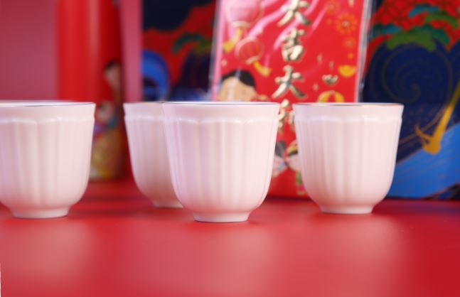 鹏翼羊脂玉瓷浮雕茶具
