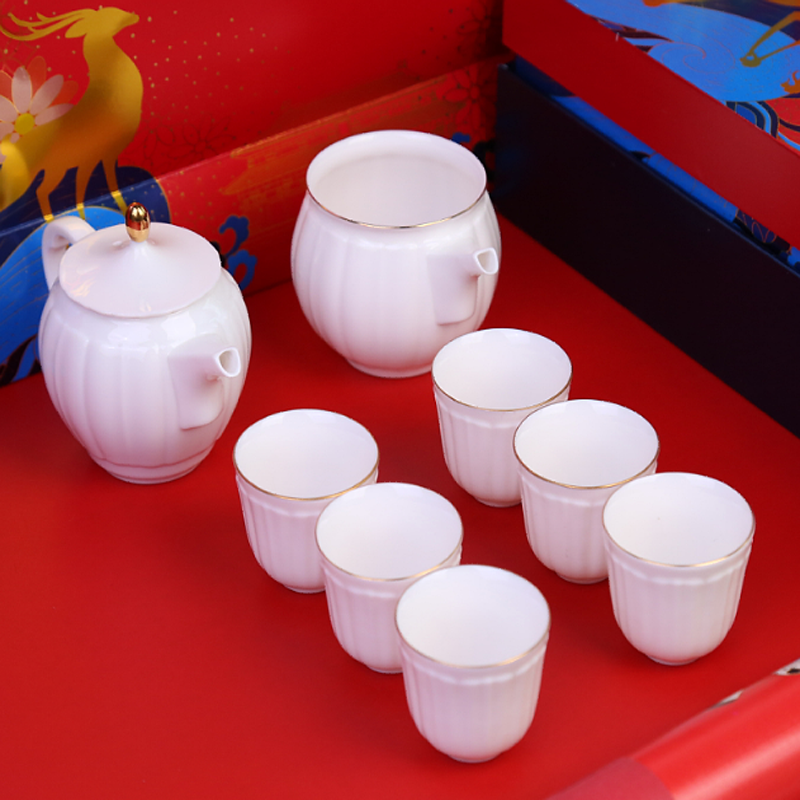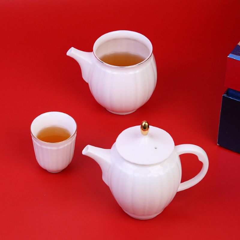 配制:1壶6杯1公道杯 1茶饼 1礼盒 手提袋 规格:壶:13.5*11cm 公道杯:11*7cm 杯:5.5*5.2cm 茶饼:19*3cm 材质:羊脂玉瓷 24K真金 推荐说明:描金羊脂玉瓷,精选优质高价瓷土 ,瓷质细腻润滑,似凝脂,如美玉。茶具描真金。 配1福鼎老白茶茶饼。品茶,赏瓷。