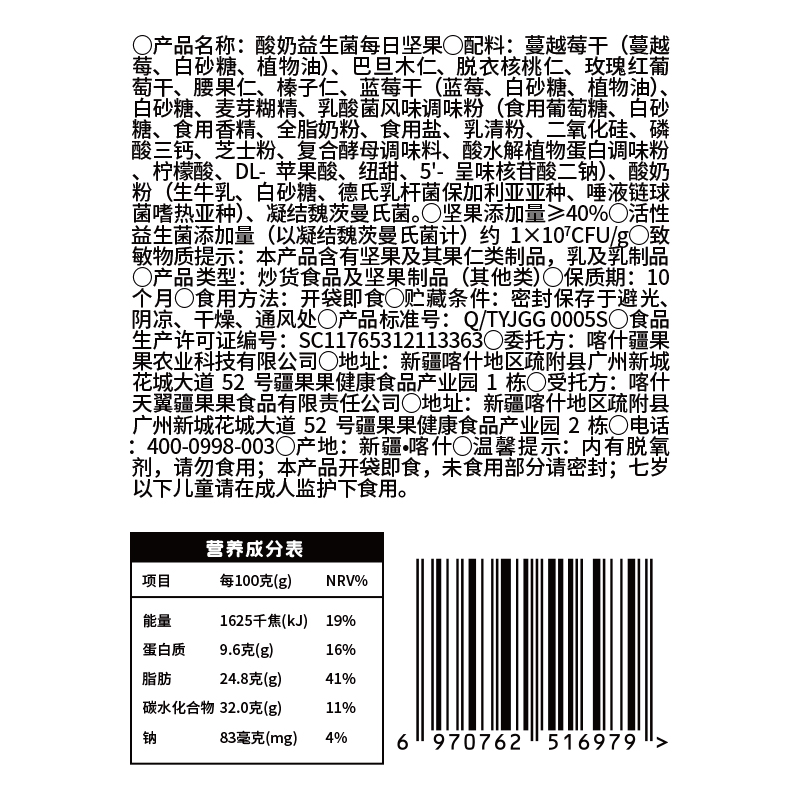 • 疆果乐酸奶益生菌每日坚果175g