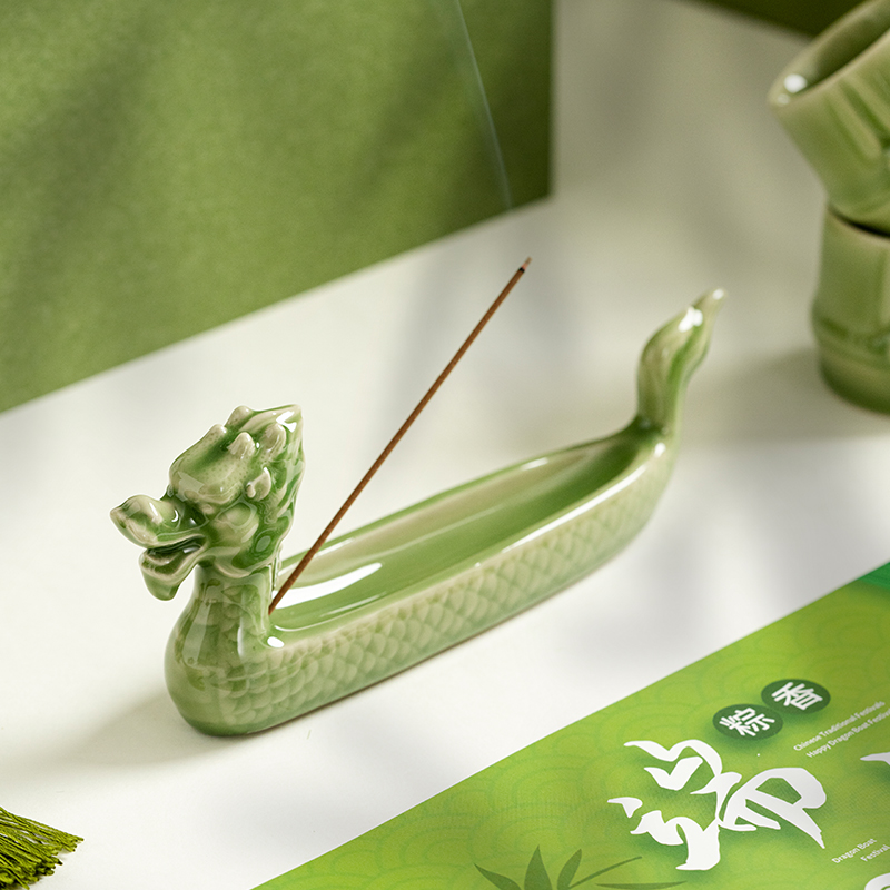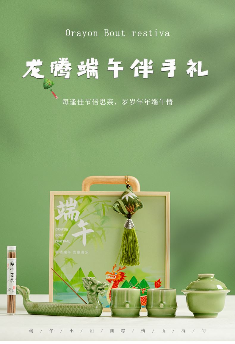 搭配端午元素龙舟香插和端午香囊,呼应端午文化,更显用心。