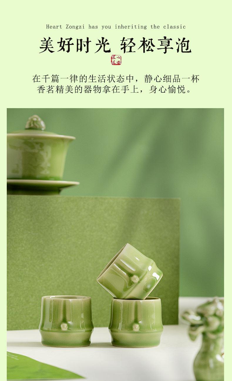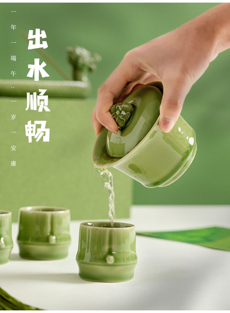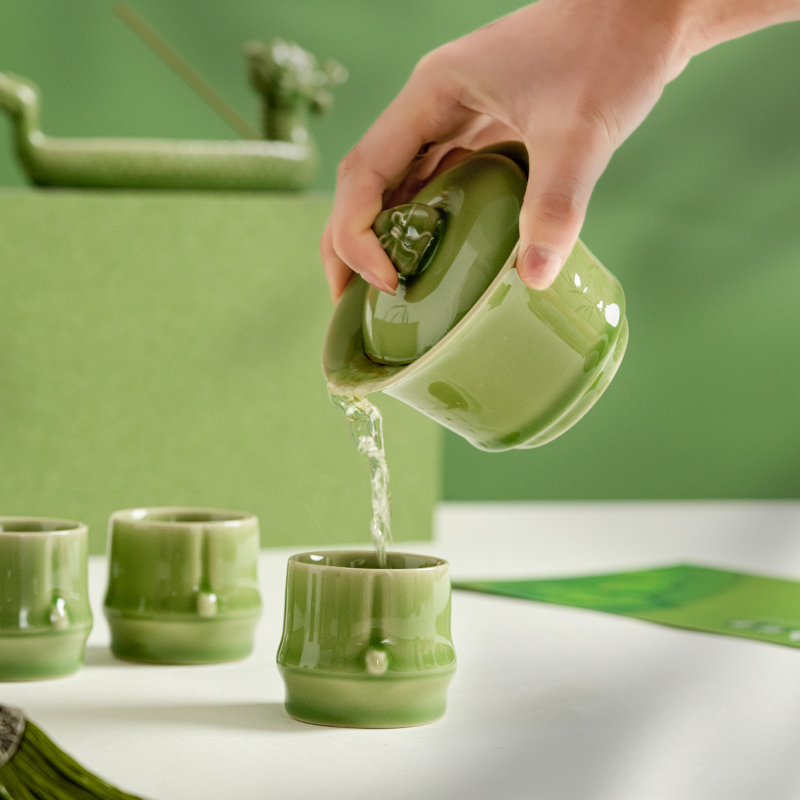 茶具选用高尚气节的“竹”元素,集安康和高升之意。