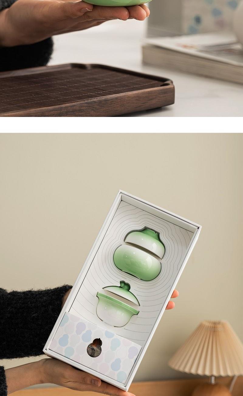 1:高等级高岭土,1300度高温烧制,不含重金属。 2:首创渐变上色工艺,颜色过渡自然,产品细节到位。 3:创新葫芦造型设计,集实用、便携、装饰功能于一身。