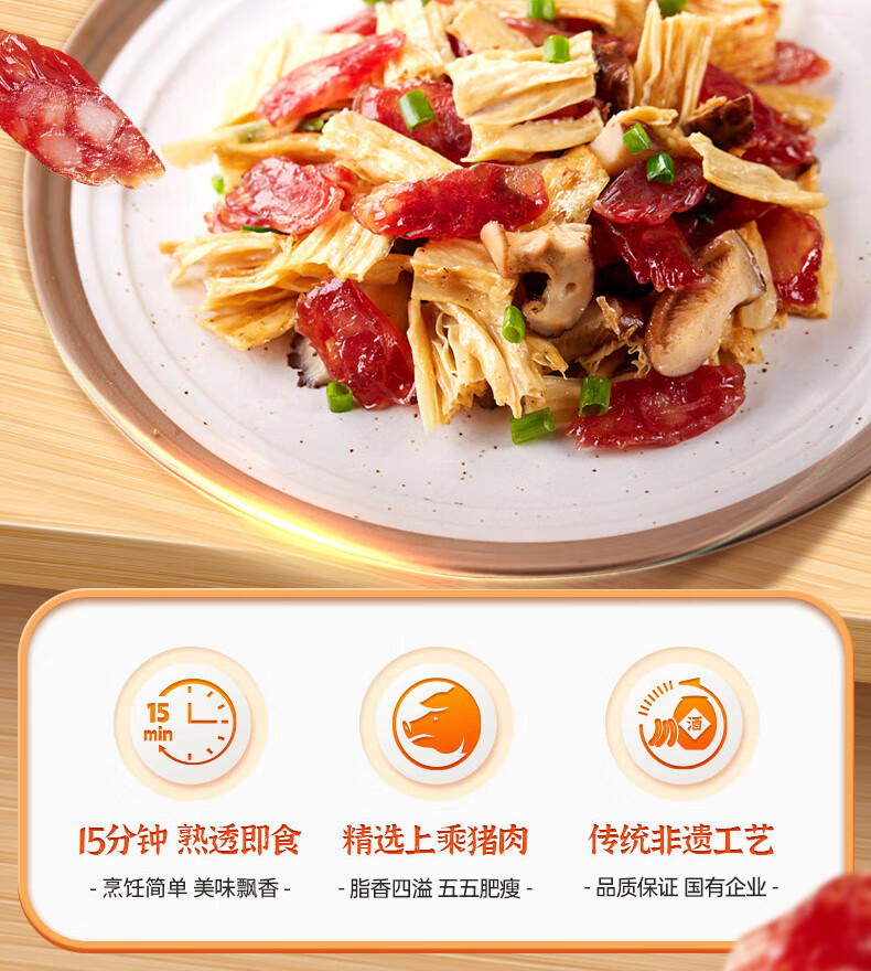 产地:广东 特产品类:广式腊肠 包装形式:袋装 食用方法:烹饪食用 加工工艺:烘干 保质期:360天