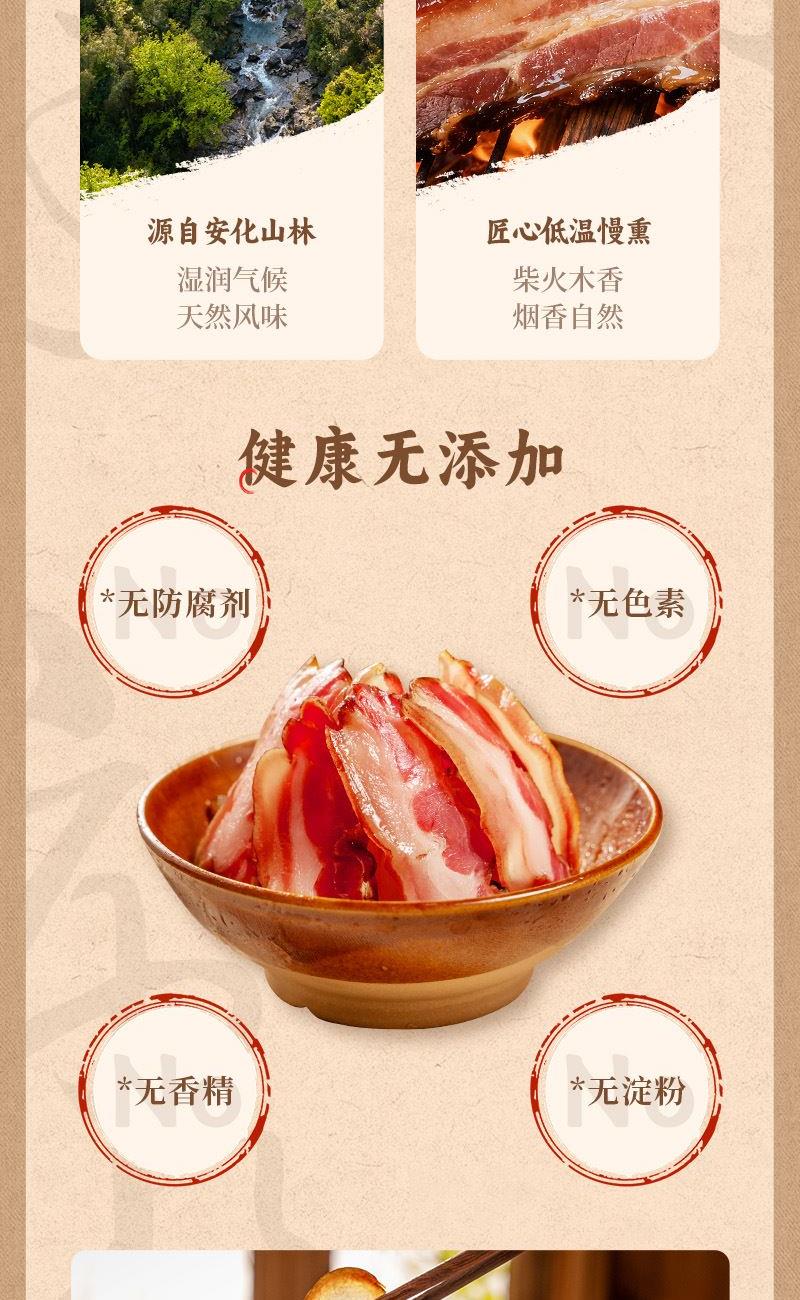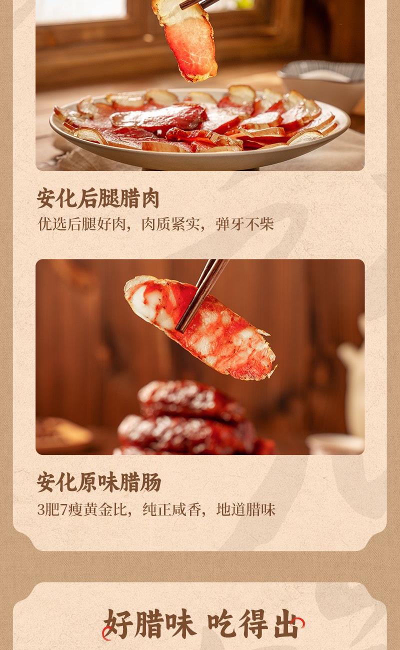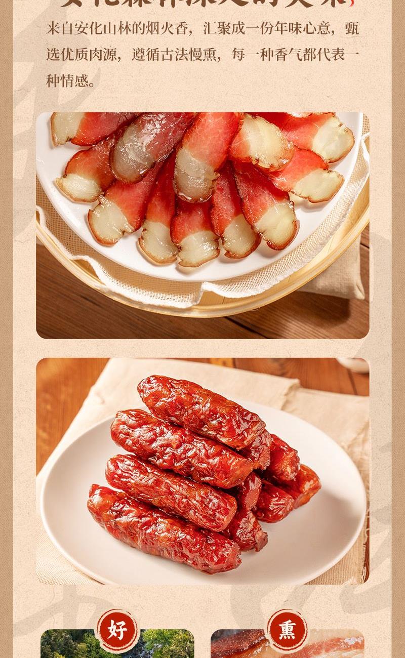 1.安化后腿腊肉(300g) 2.安化原味腊肠(250g)