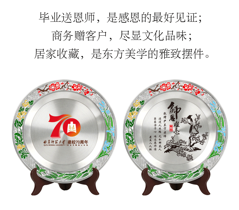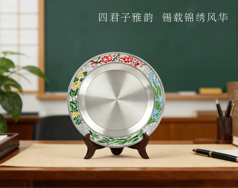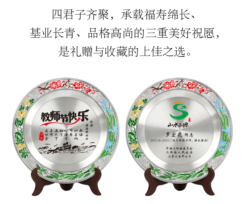 锡品源梅兰竹菊锡盘送老师教师节荣休周年校庆商务奖杯荣誉可定制