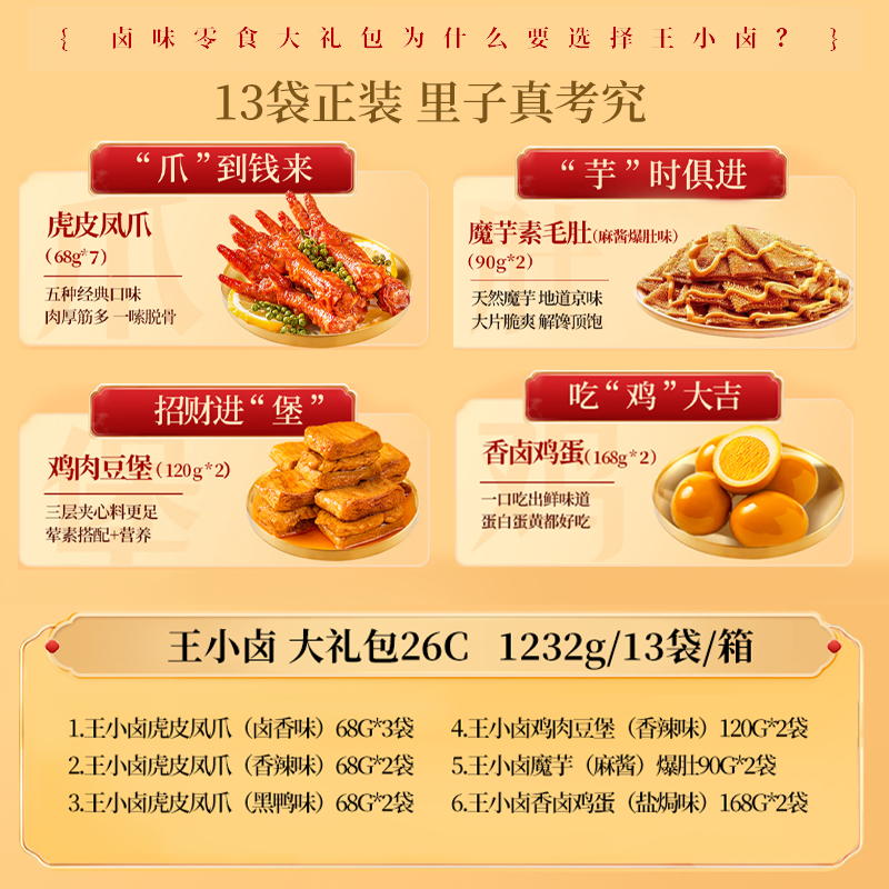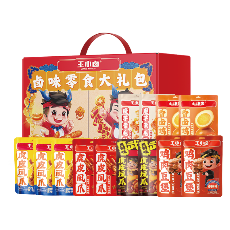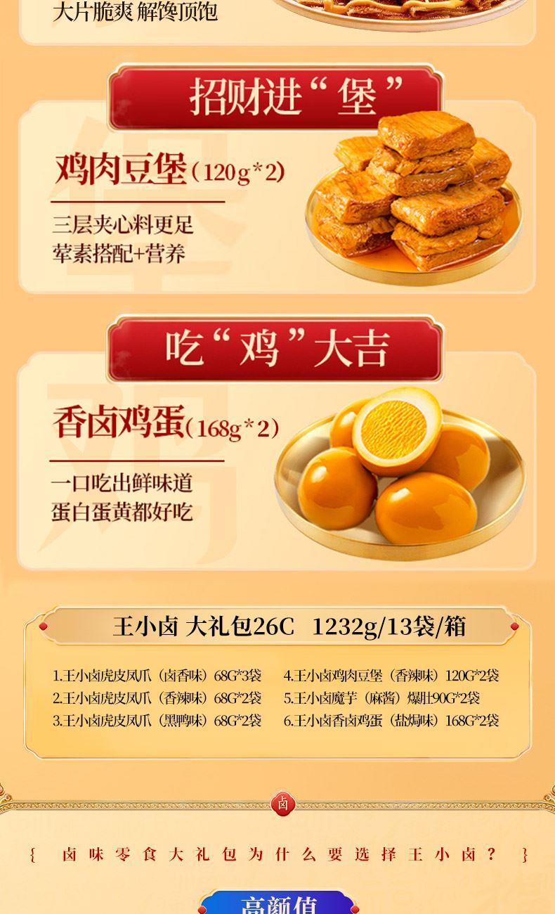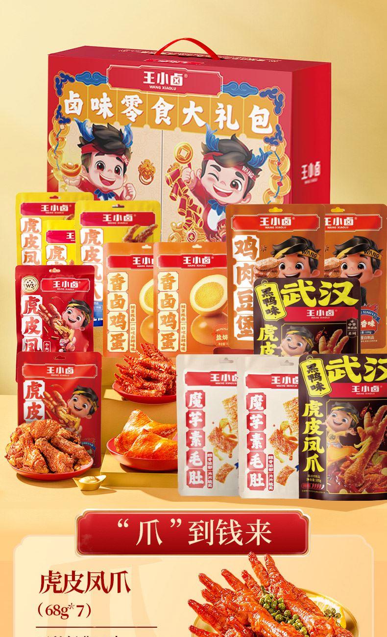 王小卤虎皮凤爪卤香味68g*3袋 王小卤虎皮凤爪香辣味68g*2袋 王小卤虎皮凤爪黑鸭味68g*2袋 王小卤鸡肉豆堡香辣味120g*2袋 王小卤魔芋麻酱爆肚90g*2袋 王小卤香卤鸡蛋(盐焗味)168g*2袋