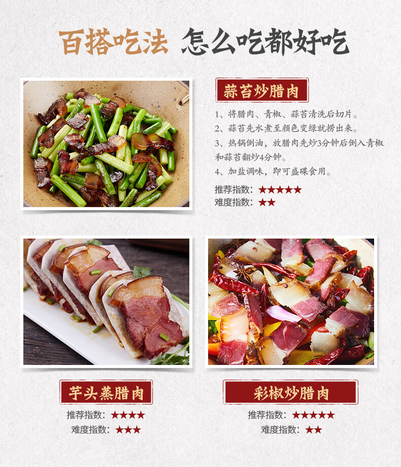 产地:广东 特产品类:广式腊肉 包装形式:袋装 食用方法:烹饪食用 加工工艺:烘干 保质期:360天