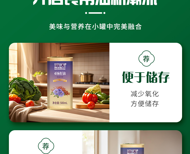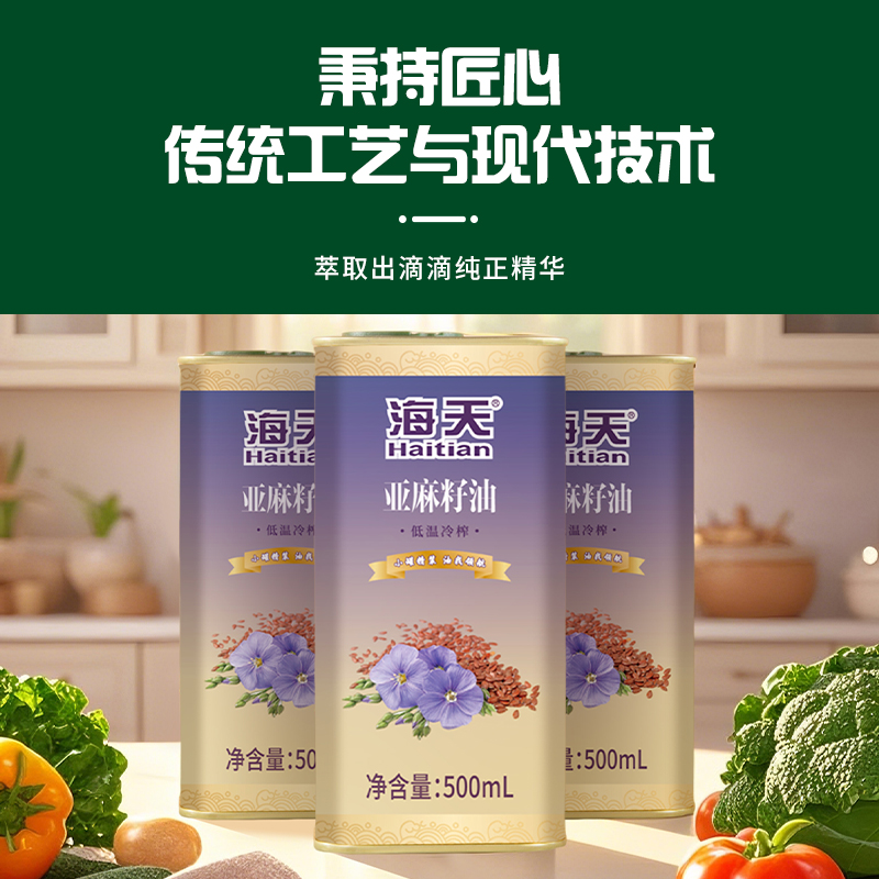 海天食用油非转基因亚麻籽油3件套(铁罐)HT-Y300T