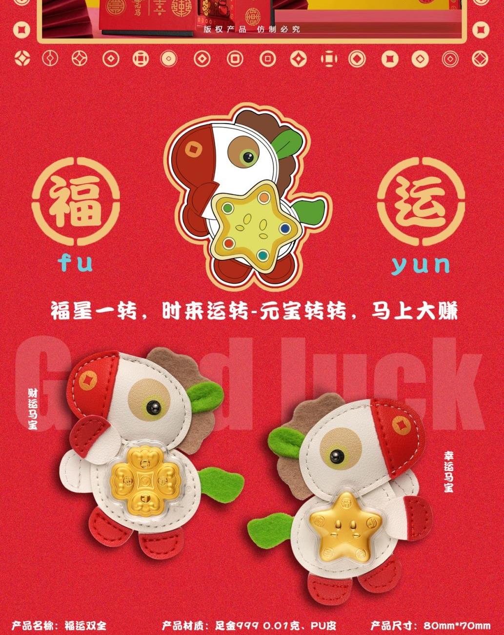 聚运鑫开门红件赚元马-福运双全黄金挂手把件文创礼