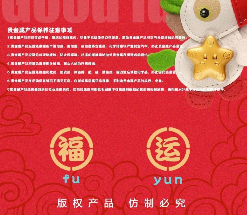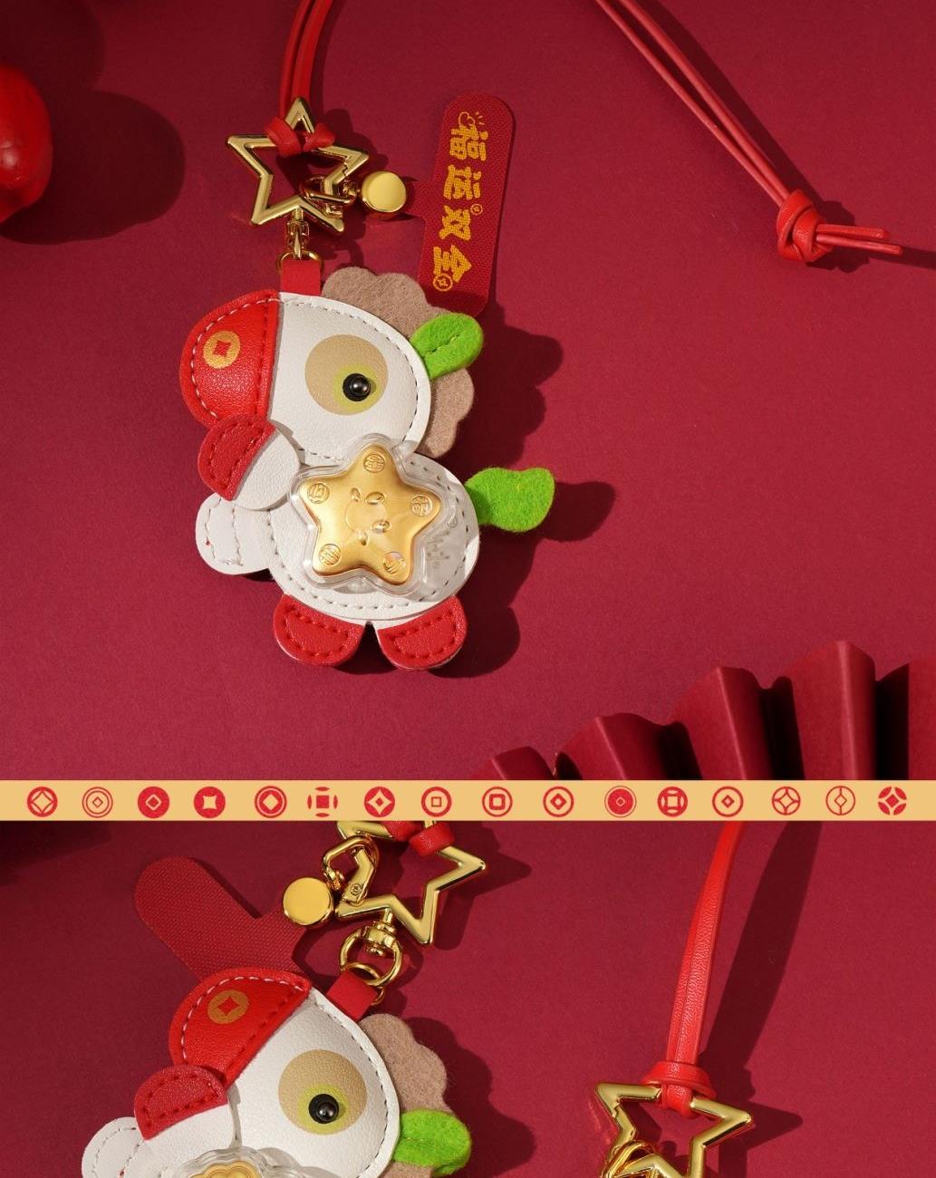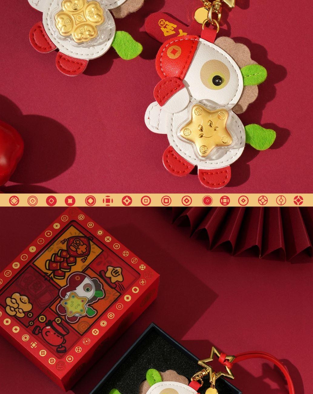 产品配置: 1.挂件x1个 2.质检证书x1张 3.精美包装x1个 4.贵金属规格:足金999 0.01 福运双全 马上招财 「赚元马」金挂件携祥瑞而来!以萌趣马驹为型,身披红白福纹,点缀璀璨金饰,绿翼跃动生机。胸前金色幸运花与四叶草闪耀,寓意财运与福气双丰收! 搭配传统喜庆礼盒,烫金“發”字与吉祥图案交织,满载“如意平安”“合家欢”祝福。无论是新春贺礼、佳节赠友,还是随身挂饰,都能将福运牢牢“赚”在手中!