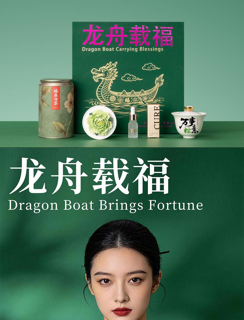 龙舟载福非遗陶瓷花文创茶具白茶套装