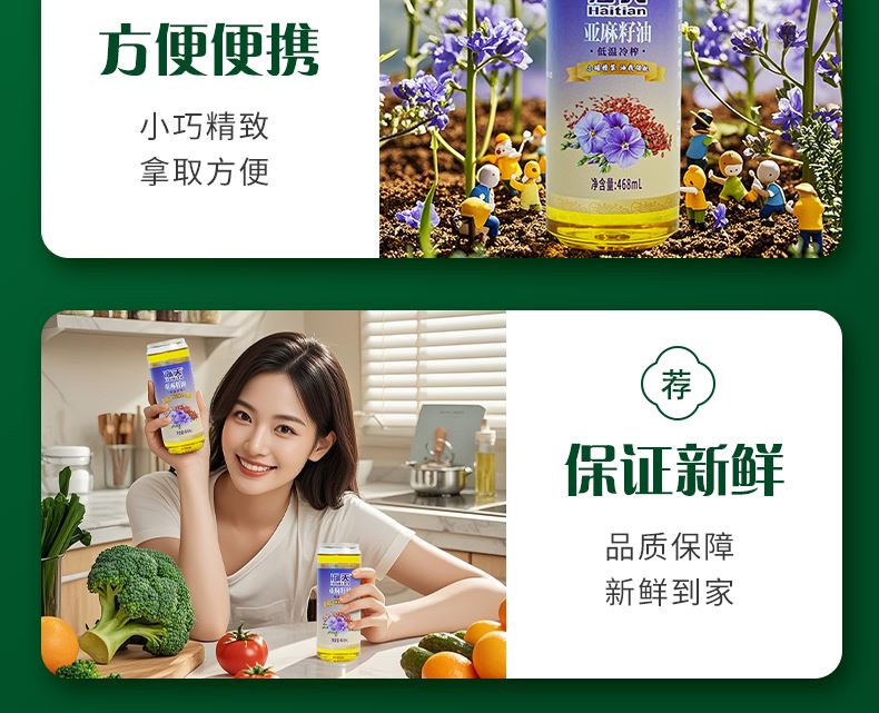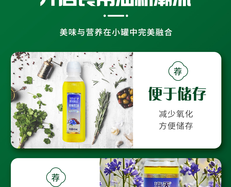 海天食用油非转基因亚麻籽油6件套468毫升*6HT-Y604